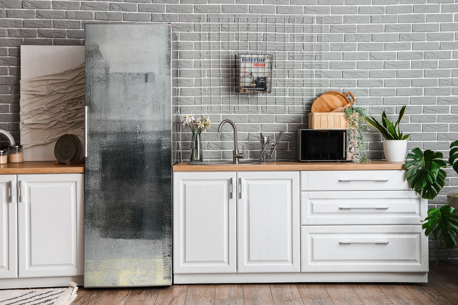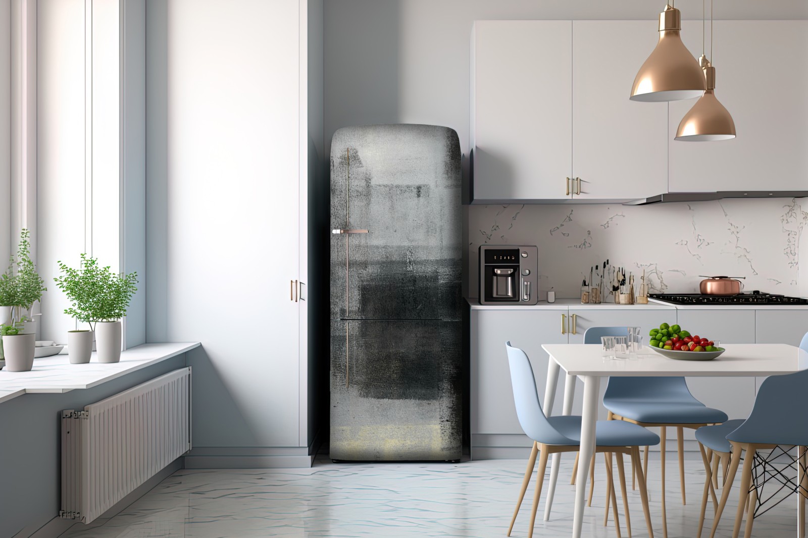 Verleihen Sie Ihrem Raum eine ruhige, moderne Atmosphäre mit dieser minimalistischen, texturierten abstrakten Arbeit in Grautönen.