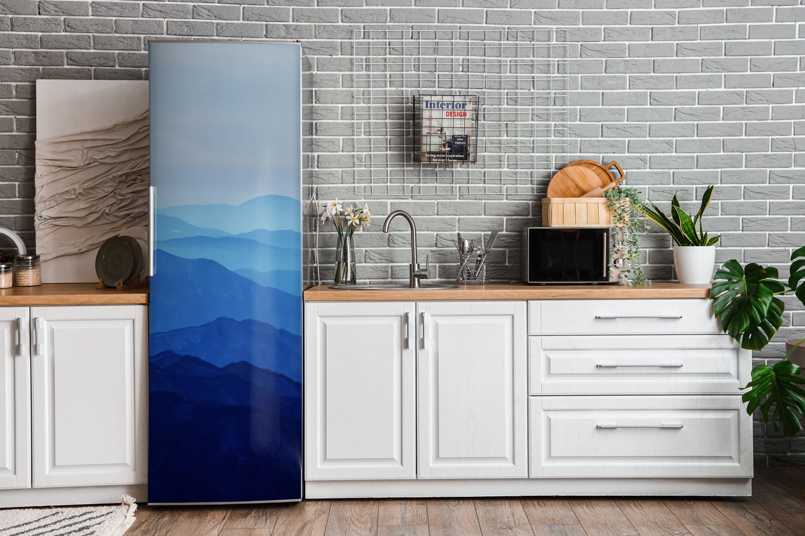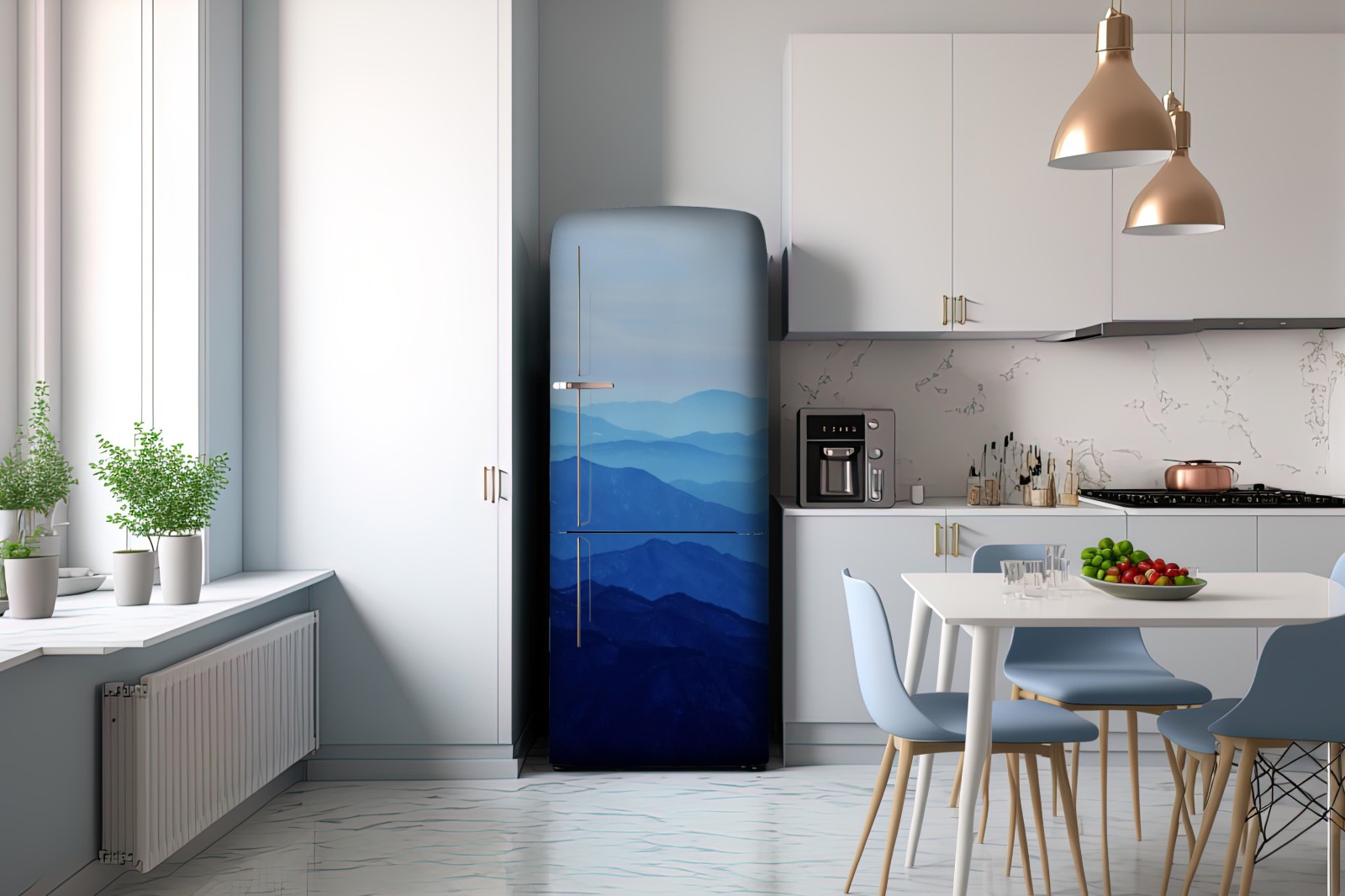 Kühlschrankaufkleber neblige blaue bergschichten