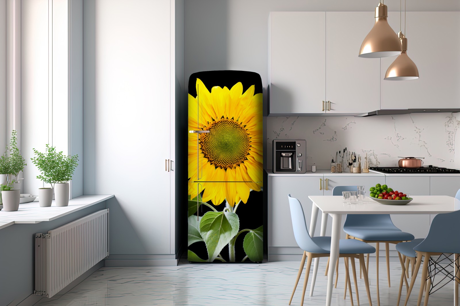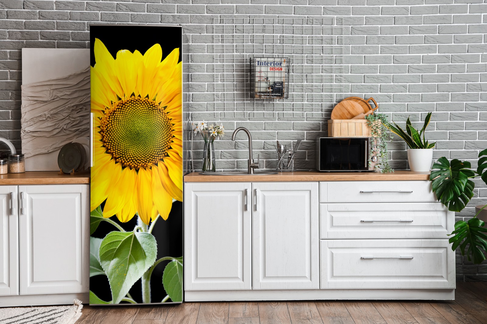 Kühlschrankaufkleber leuchtende sonnenblume vor schwarzem hintergrund