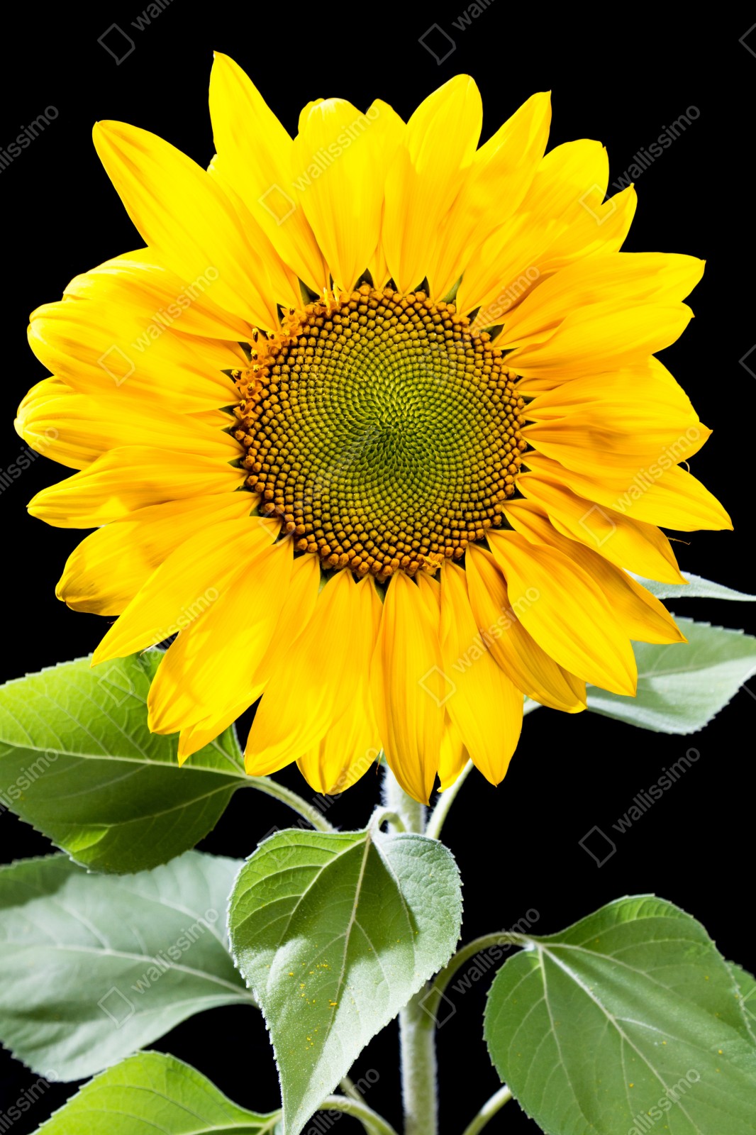 Bringen Sie warme Energie in Ihr Zuhause mit einer leuchtenden Sonnenblume vor dramatischem schwarzem Hintergrund, perfekt für Wohnzimmer und Büro.