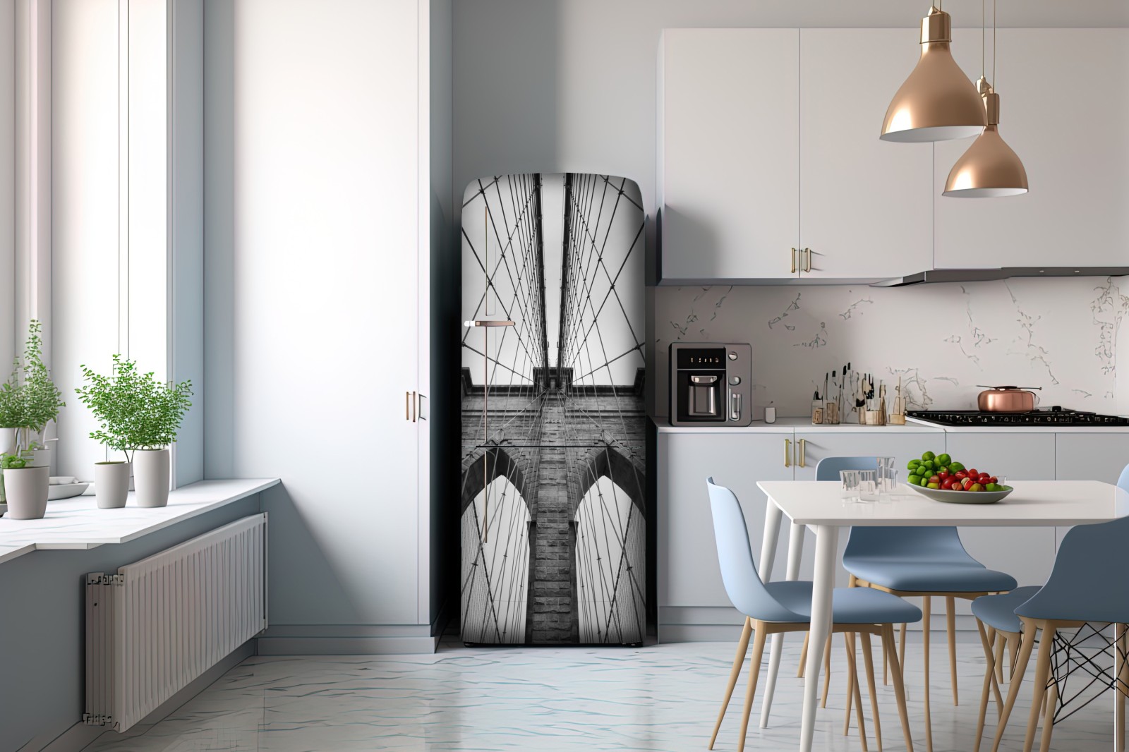 Kühlschrankaufkleber perspektive der Brooklyn Bridge in monochrom