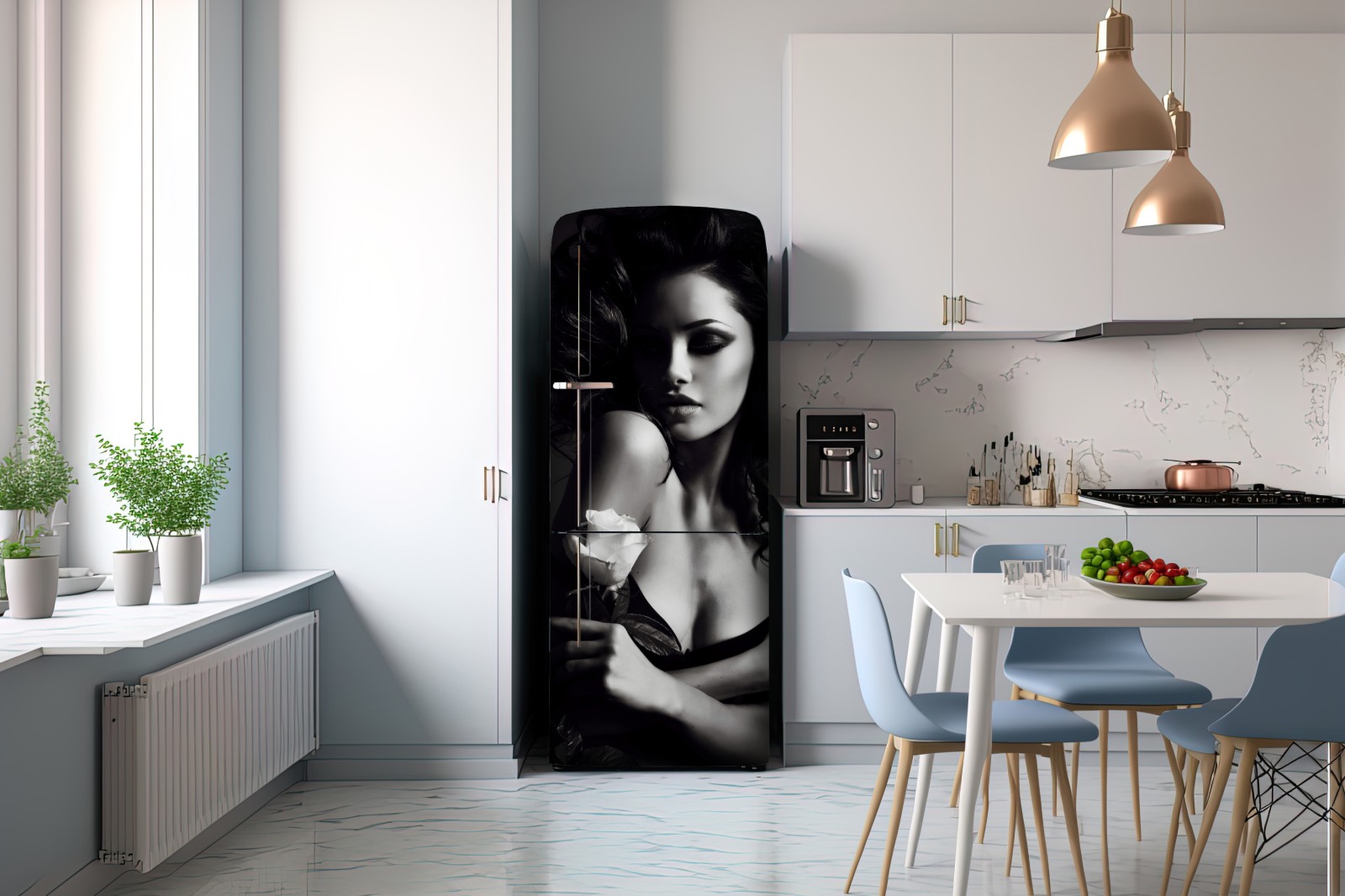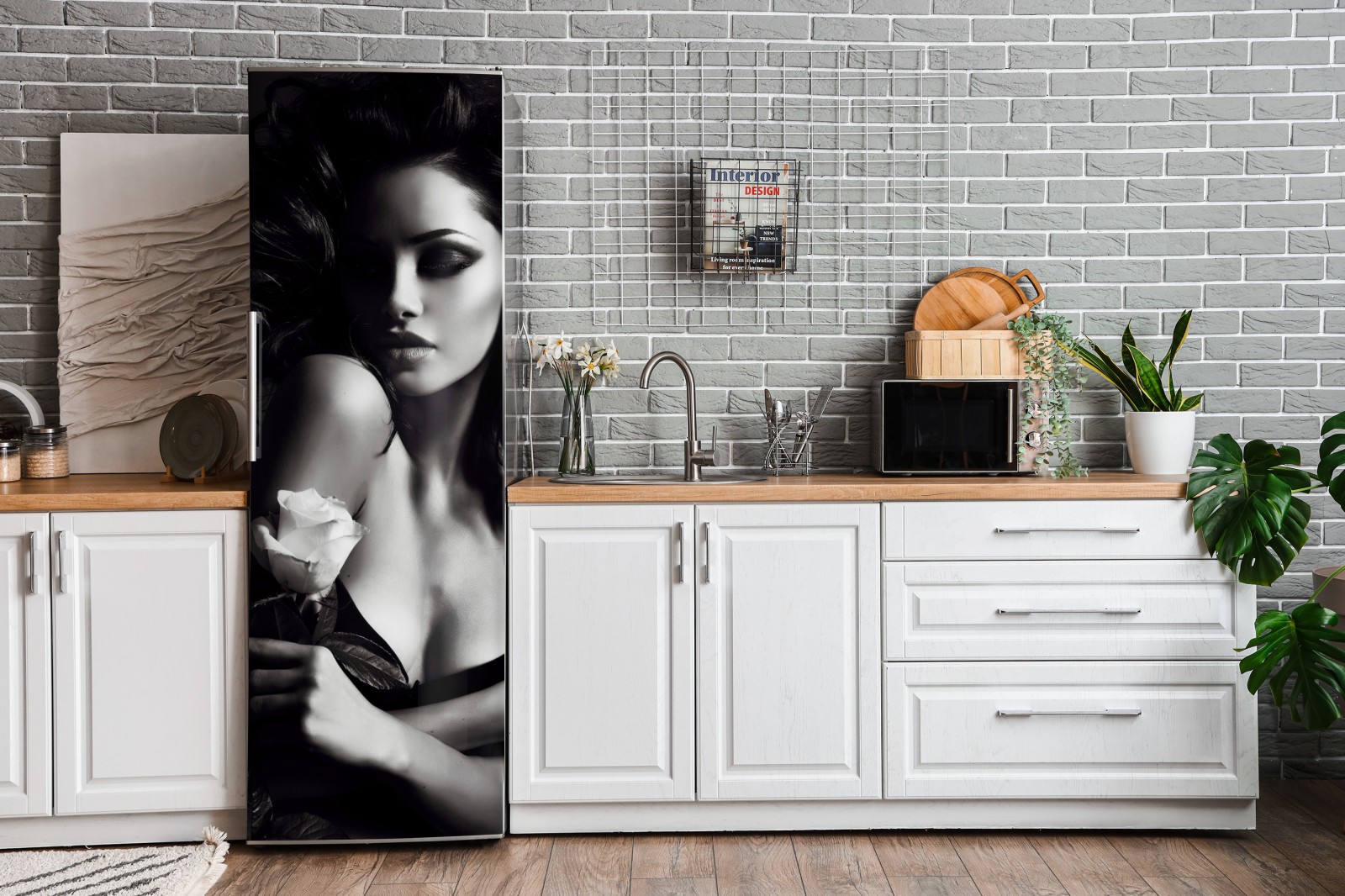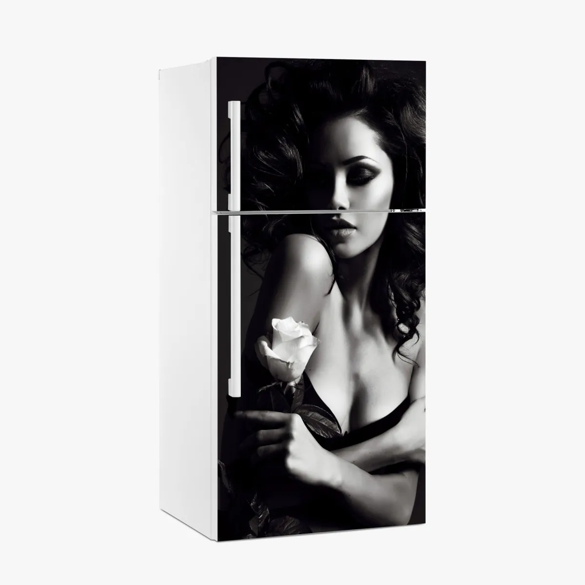 Kühlschrankaufkleber sinnliches schwarzweiß-porträt mit rose