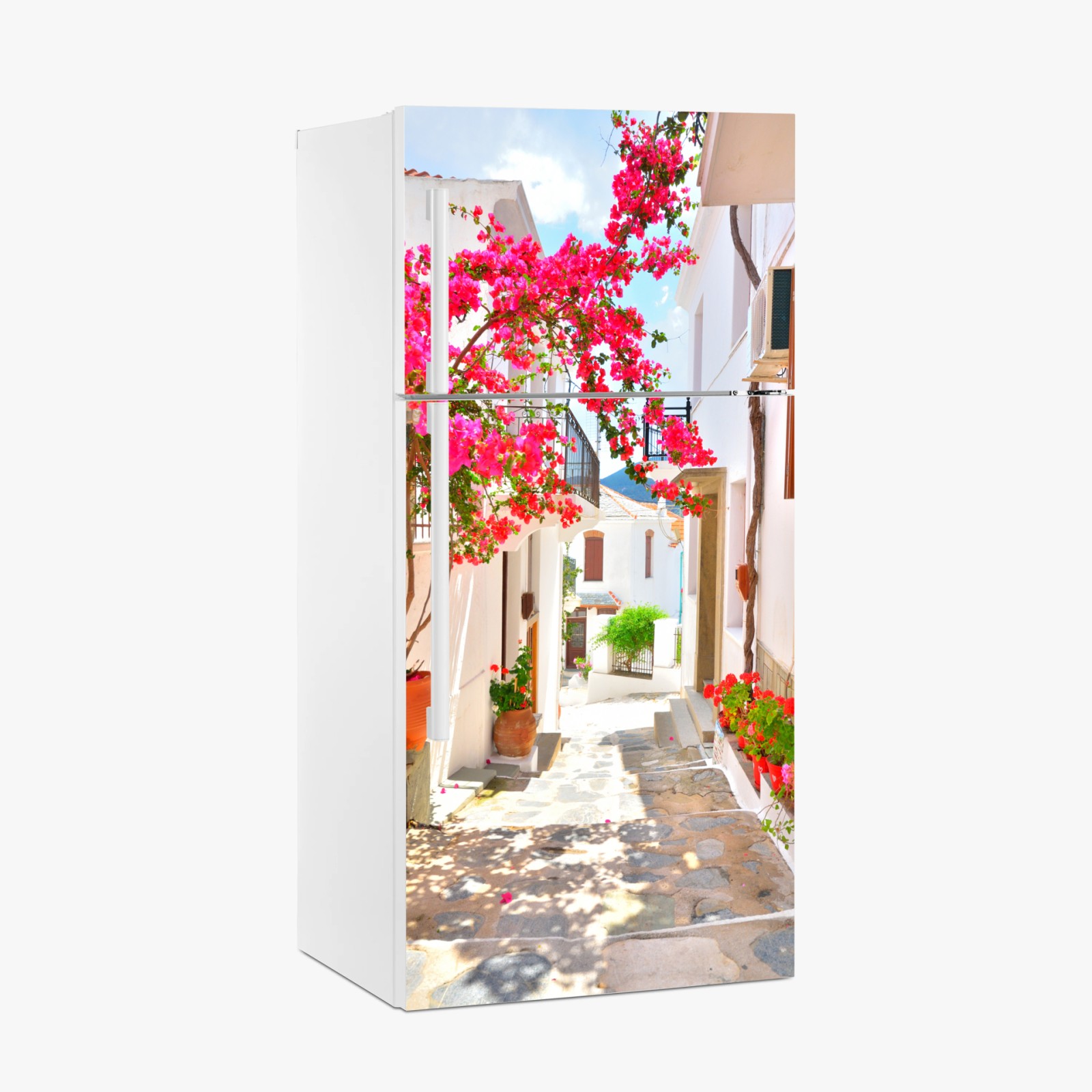 Kühlschrankaufkleber Sonnige mediterrane gasse mit bougainvillea