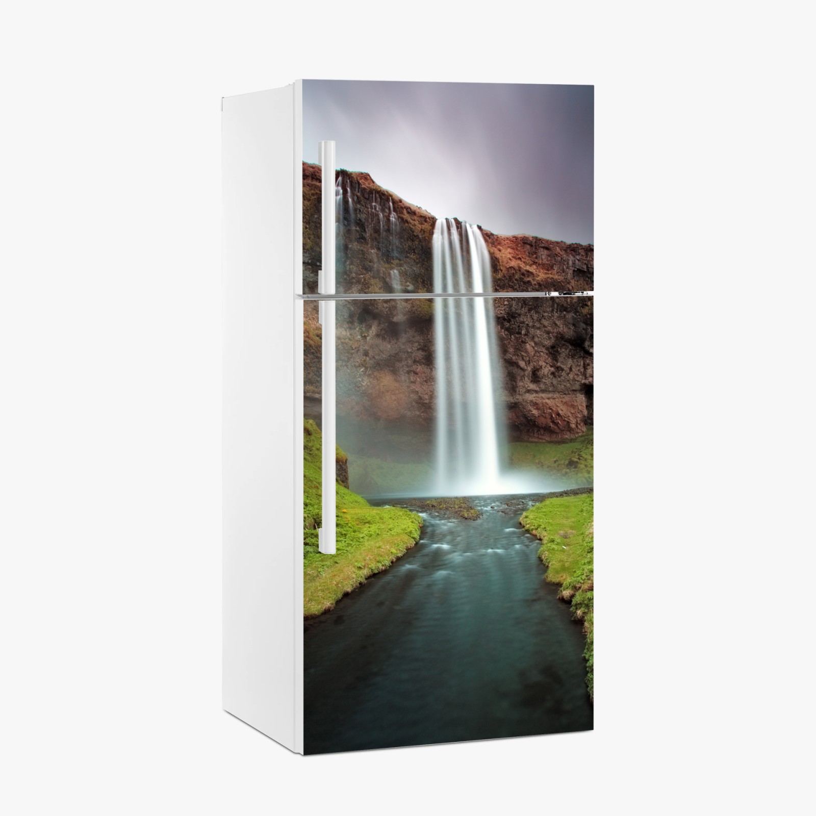 Kühlschrankaufkleber Nebeliger wasserfall im üppigen tal