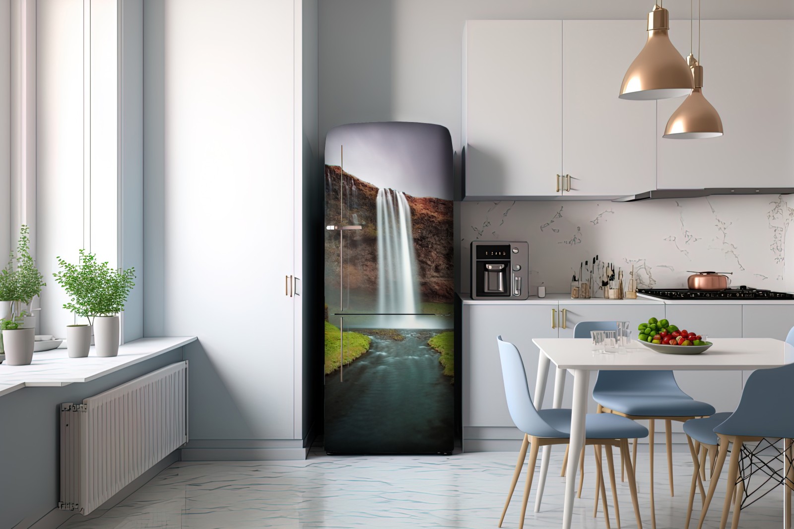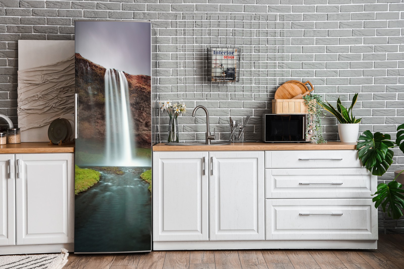 Kühlschrankaufkleber nebeliger wasserfall im üppigen tal