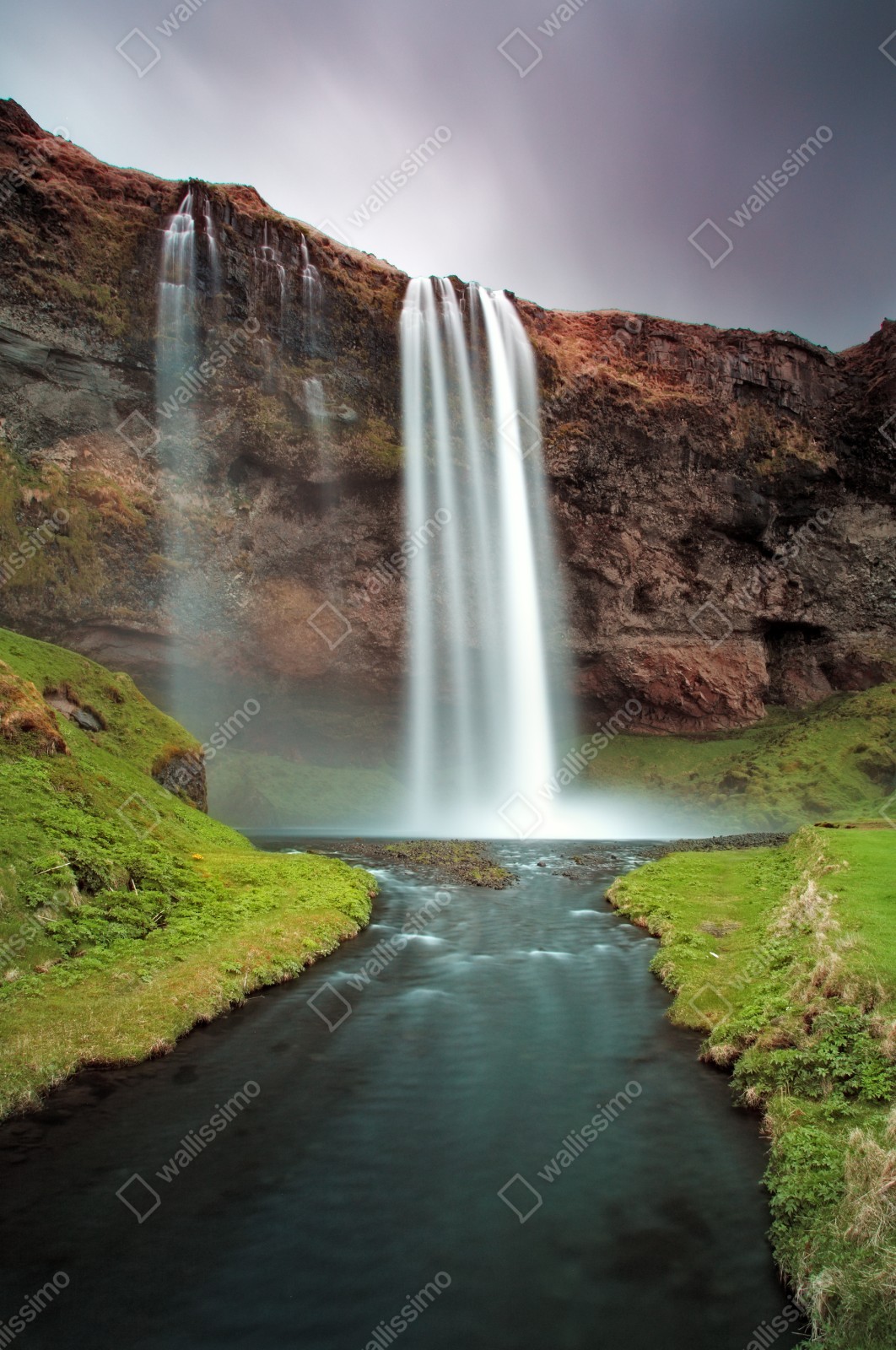 Bringen Sie beruhigende natürliche Schönheit in Ihr Zuhause mit dieser nebligen Wasserfallaufnahme, ideal als ruhiger Blickfang in jedem Raum.