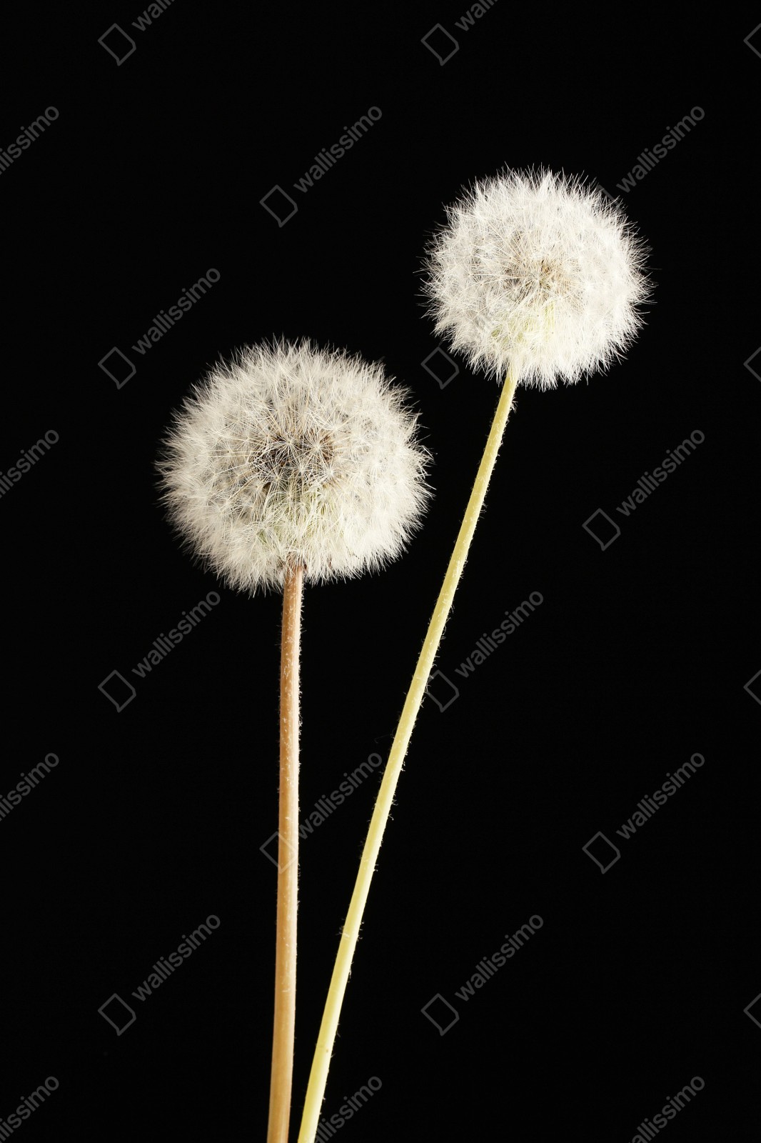 Verleihen Sie Ihrem Raum eine zarte Note mit Löwenzahn-Samen vor dramatischem schwarzem Hintergrund. Das minimalistische Motiv bringt Ruhe und Eleganz in jeden Raum.