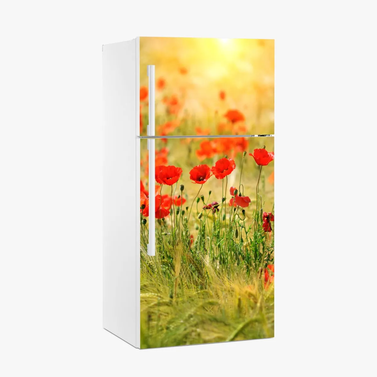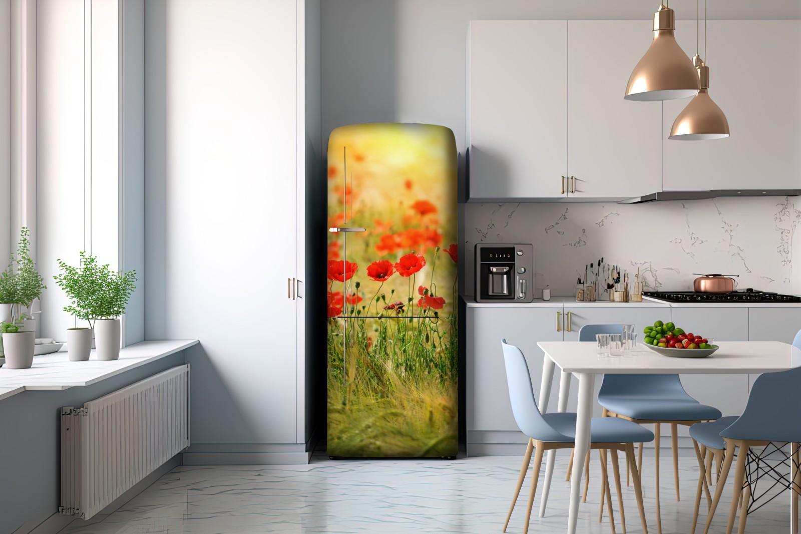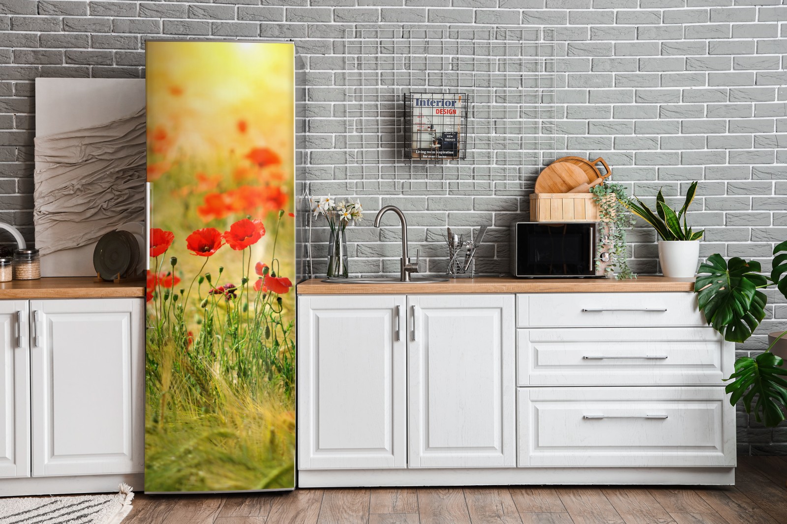 Kühlschrankaufkleber rote mohnwiese im sonnenlicht