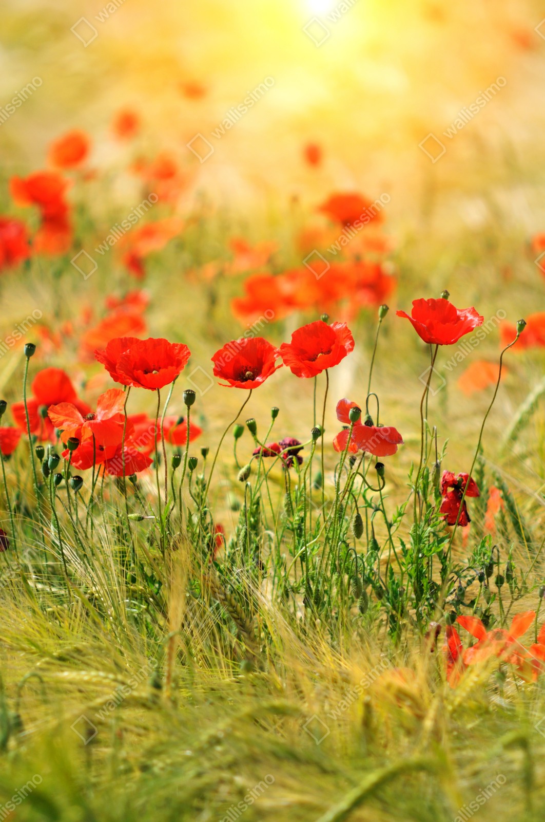 Bringen Sie die Ruhe sommerlicher Felder in Ihr Zuhause mit diesem lebendigen Bild roter Mohnblumen, das Wärme und natürliche Schönheit ausstrahlt.