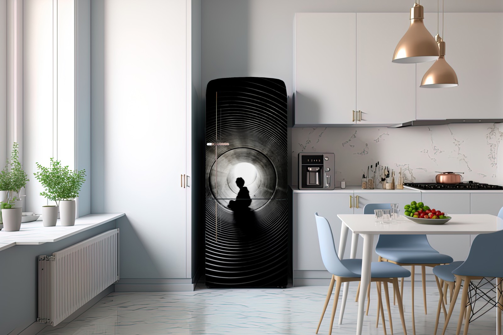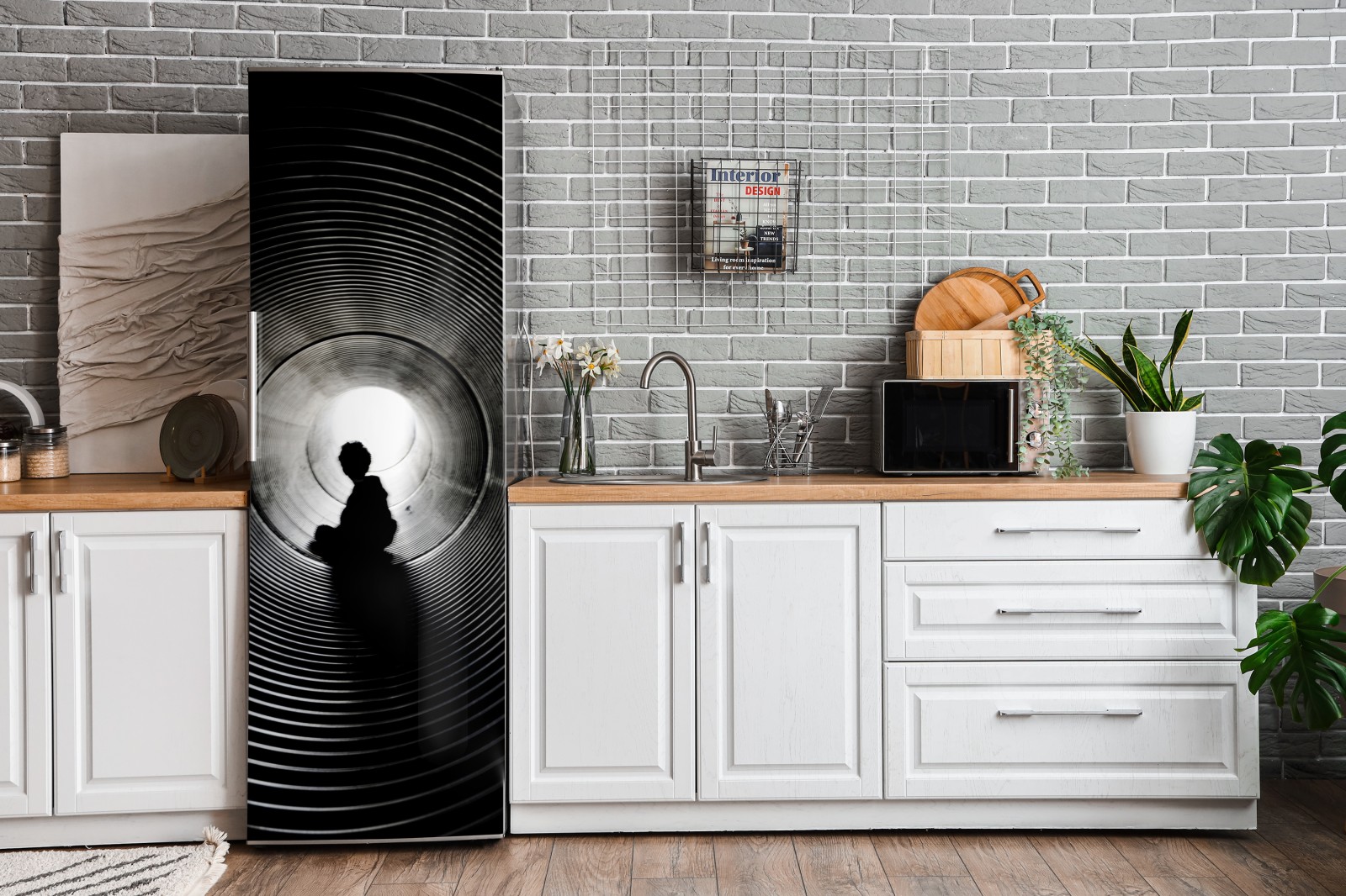 Kühlschrankaufkleber silhouette in einem spiraltunnel
