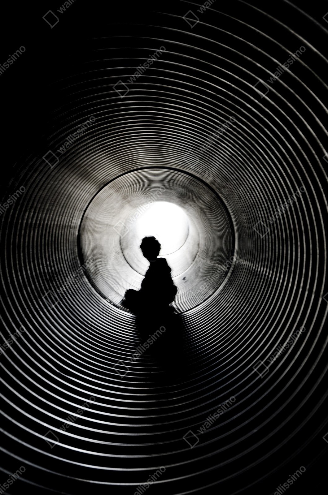 Beeindruckende monochrome Silhouette in einem Spiraltunnel verleiht jedem Raum minimalistisches Drama und moderne Tiefe.