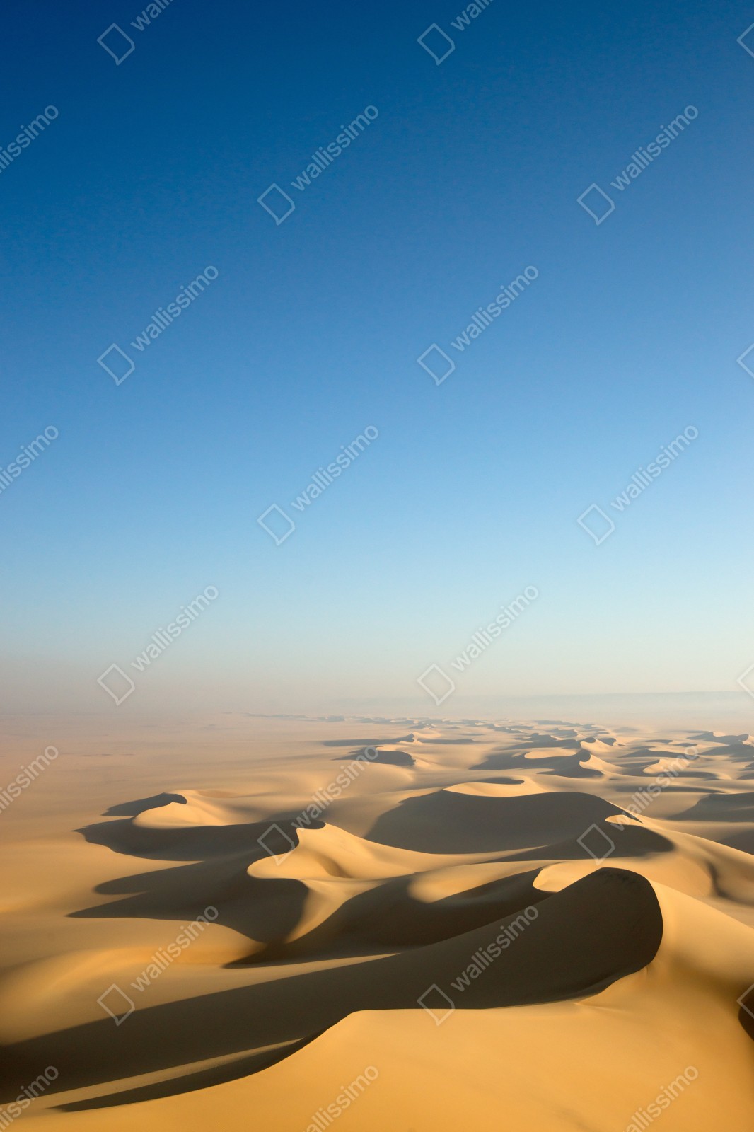 Bringen Sie Ruhe und Weite in Ihr Zuhause mit einer beruhigenden Wüstenlandschaft aus sanften Sandtönen und klarem blauem Himmel.