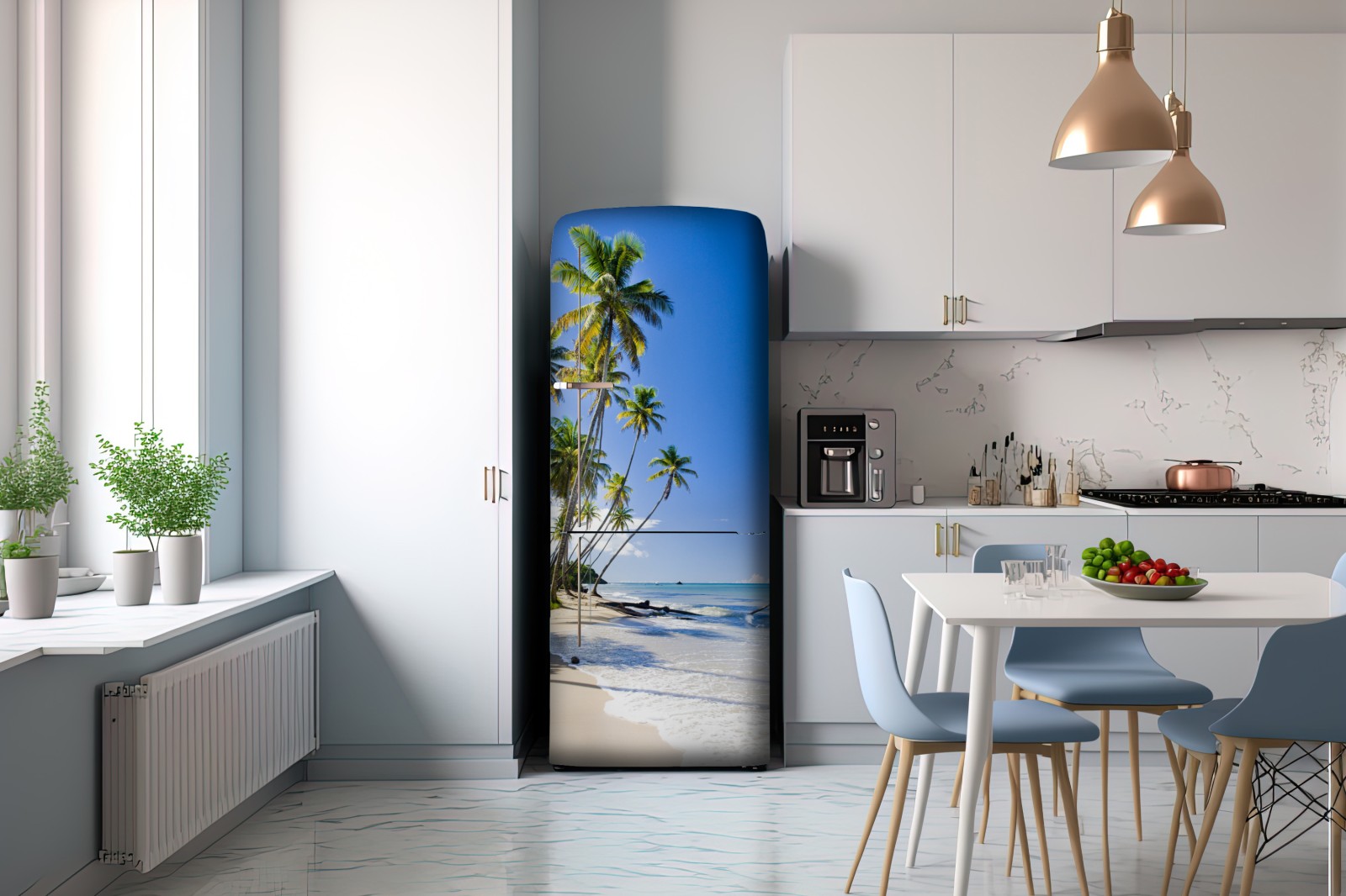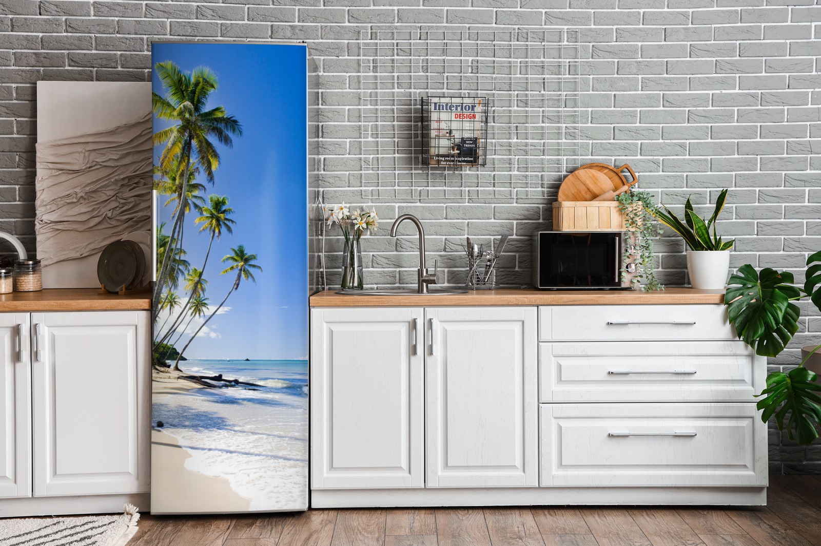 Kühlschrankaufkleber tropischer palmenstrand unter blauem himmel