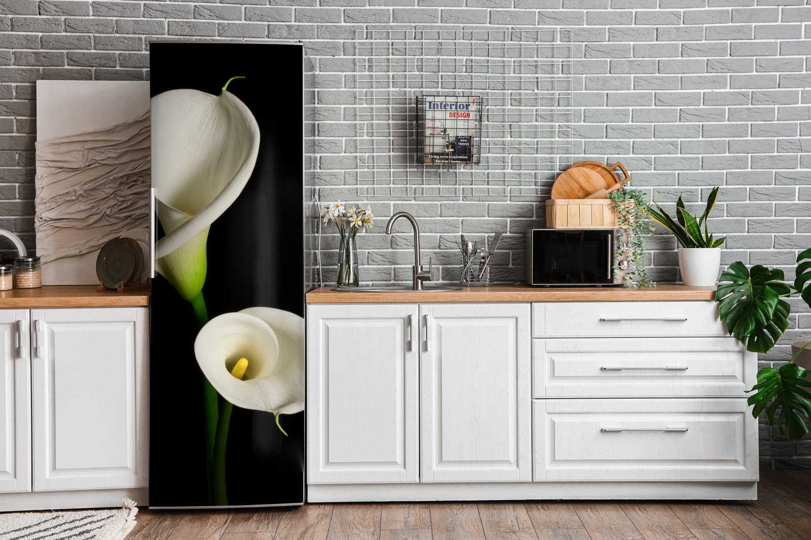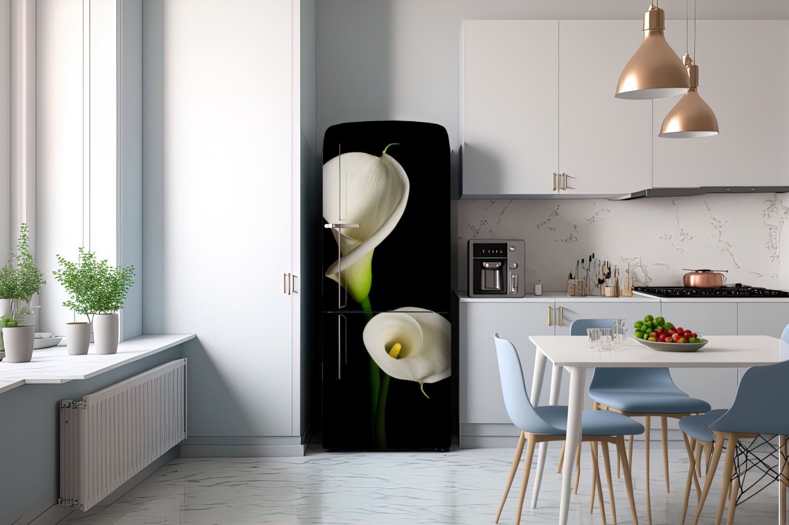 Kühlschrankaufkleber weiße calla vor schwarzem hintergrund