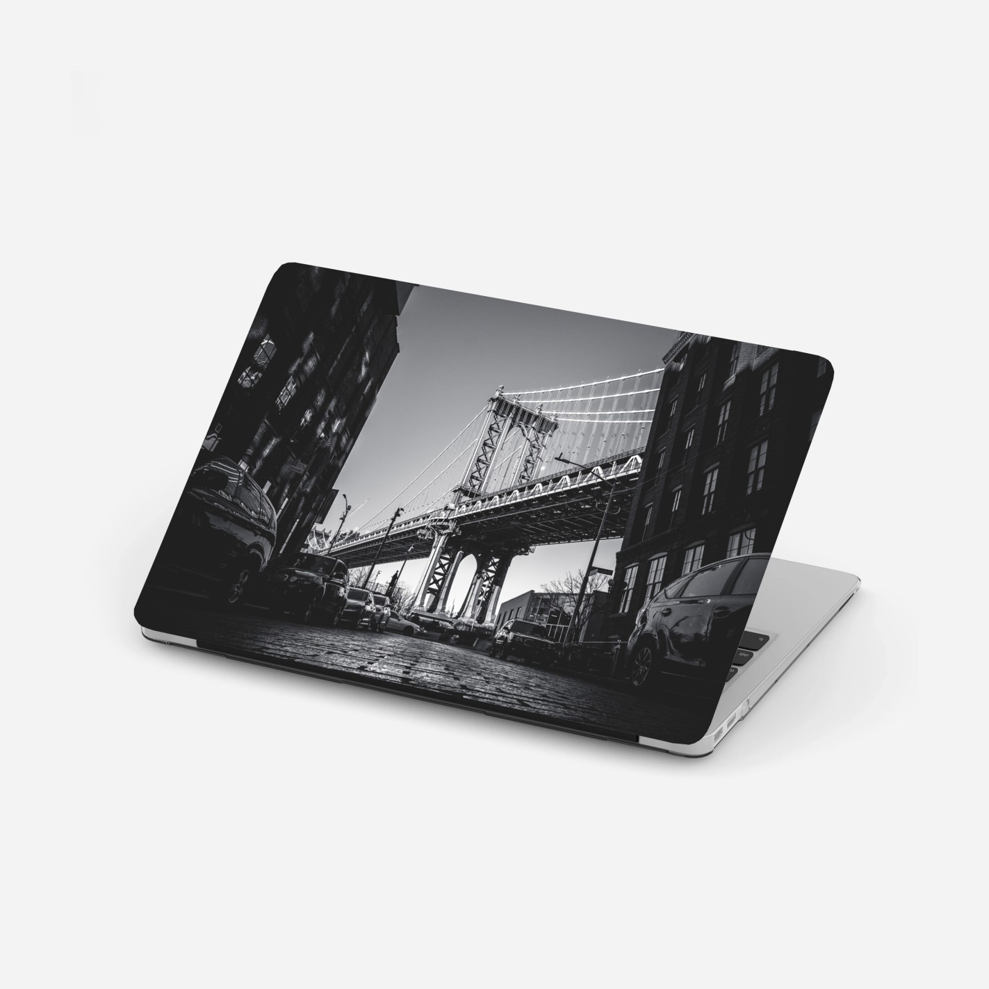 Laptop-Aufkleber Manhattan brücke perspektive über kopfsteinpflaster