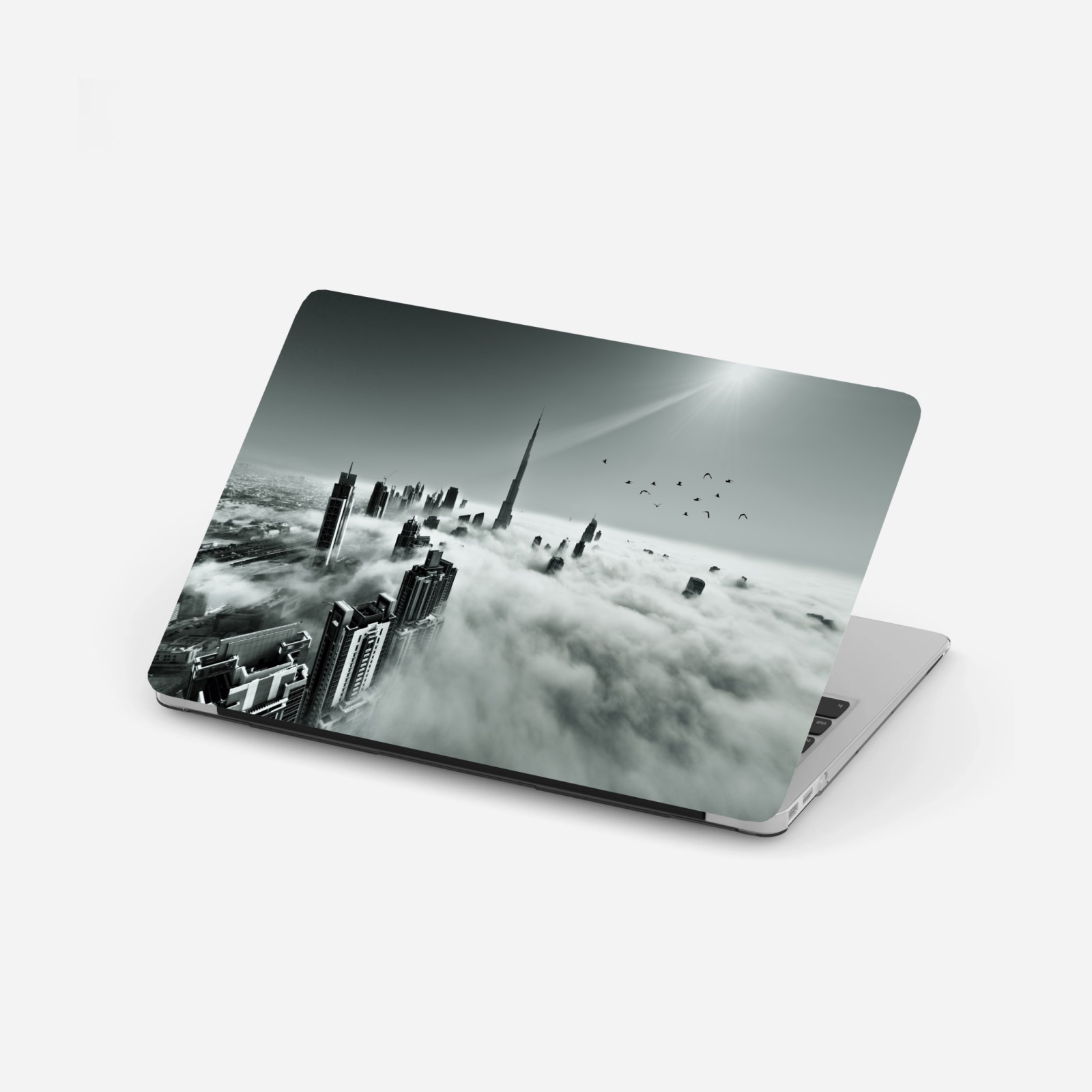 Laptop-Aufkleber Neblige skyline von Dubai über den wolken