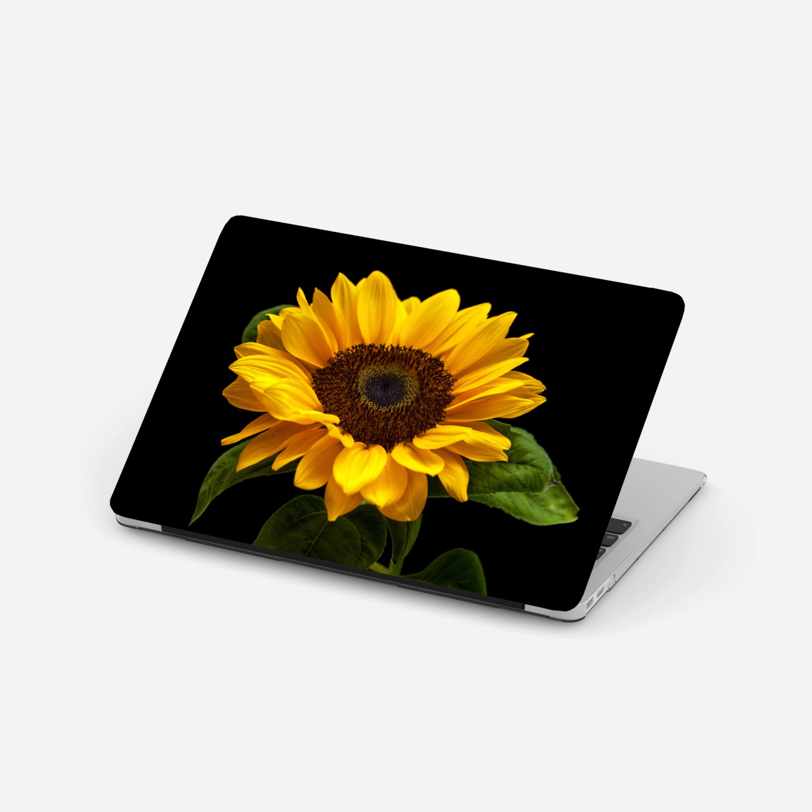 Laptop-Aufkleber Leuchtende sonnenblume auf schwarzem hintergrund