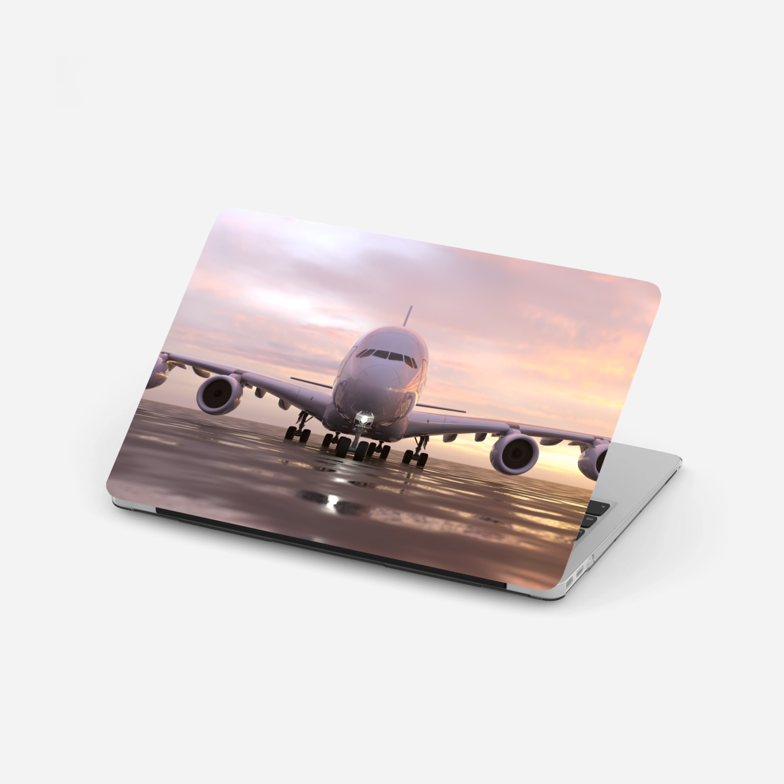Laptop-Aufkleber Jet auf der startbahn bei sonnenuntergang