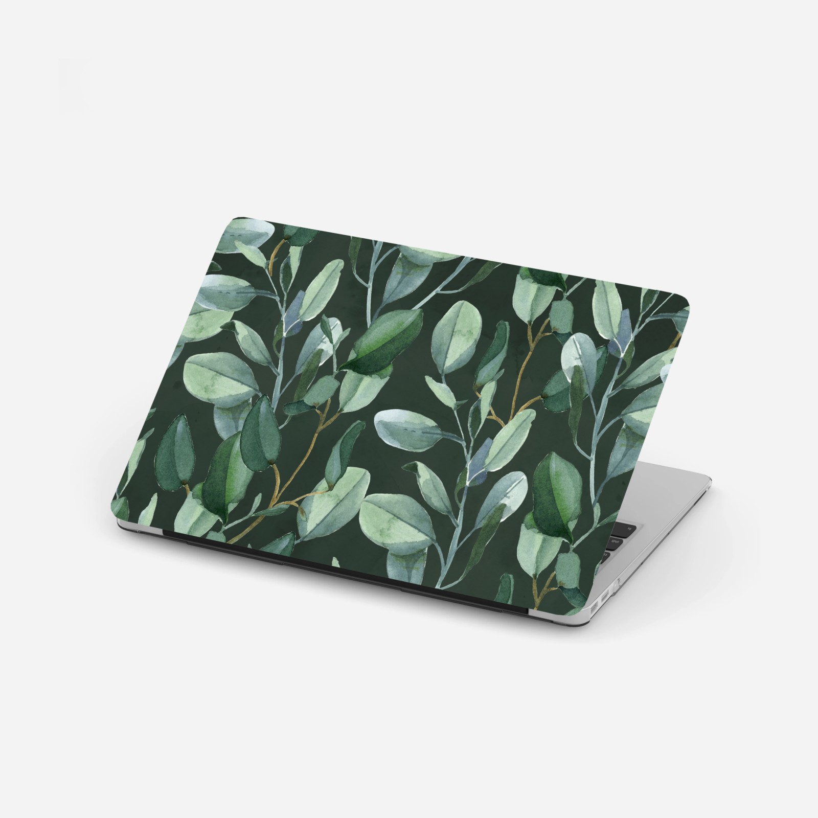 Laptop-Aufkleber Aquarell eukalyptusblätter muster auf dunkelgrünem hintergrund