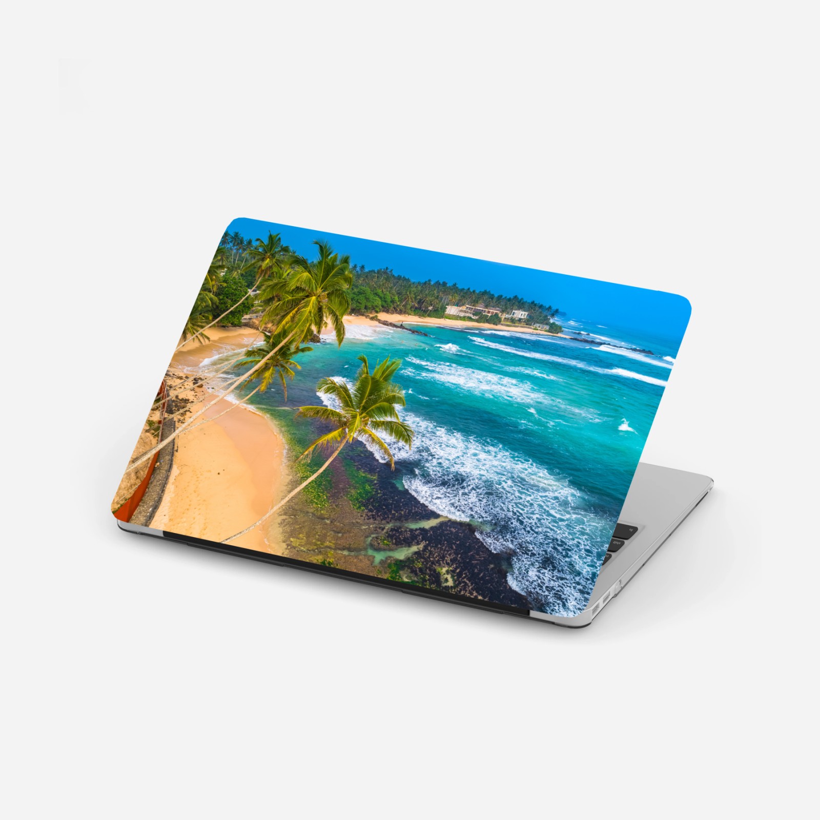 Laptop-Aufkleber Türkisfarbene tropische küste mit palmen