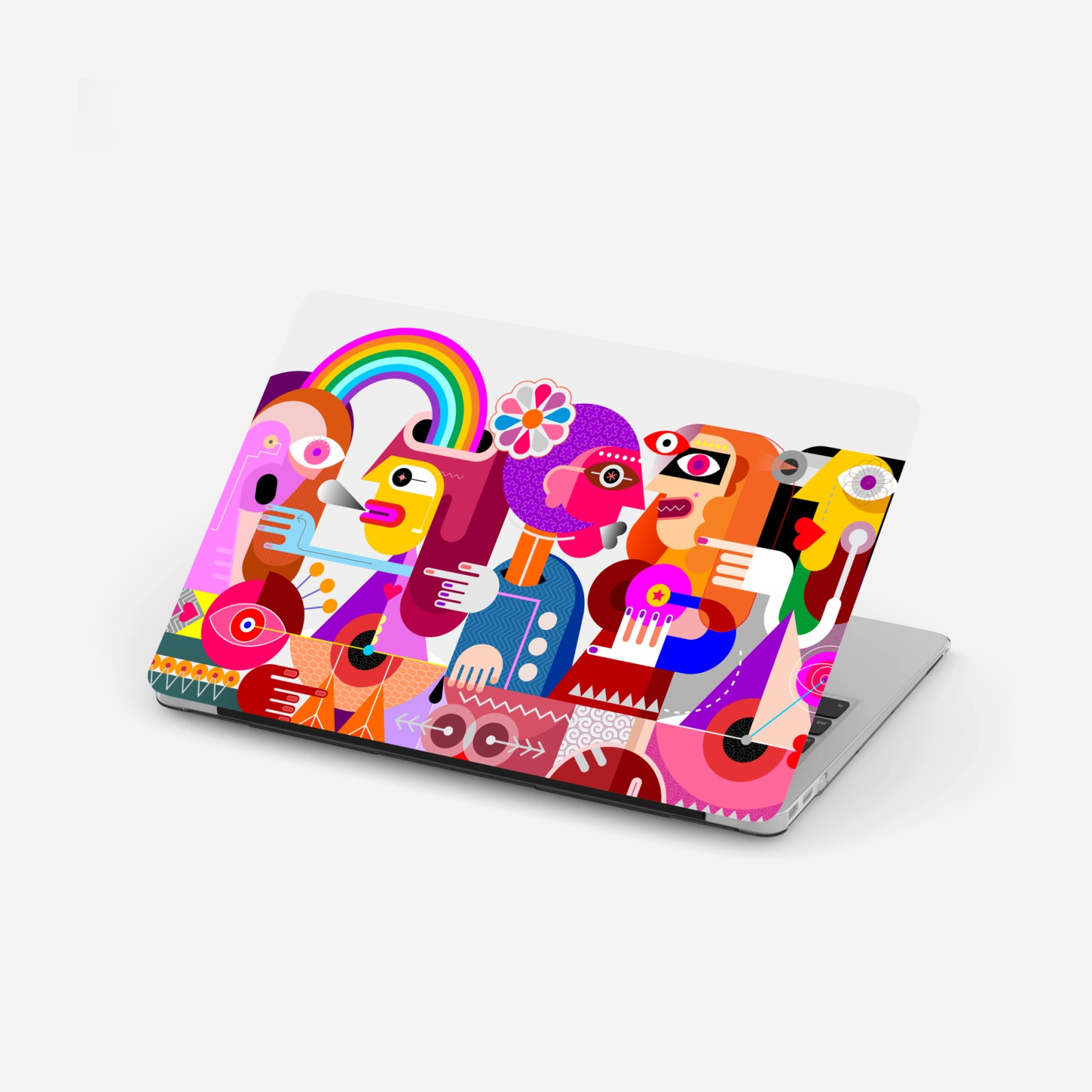 Laptop-Aufkleber Mann mit regenbogen reitet geometrischen vogel
