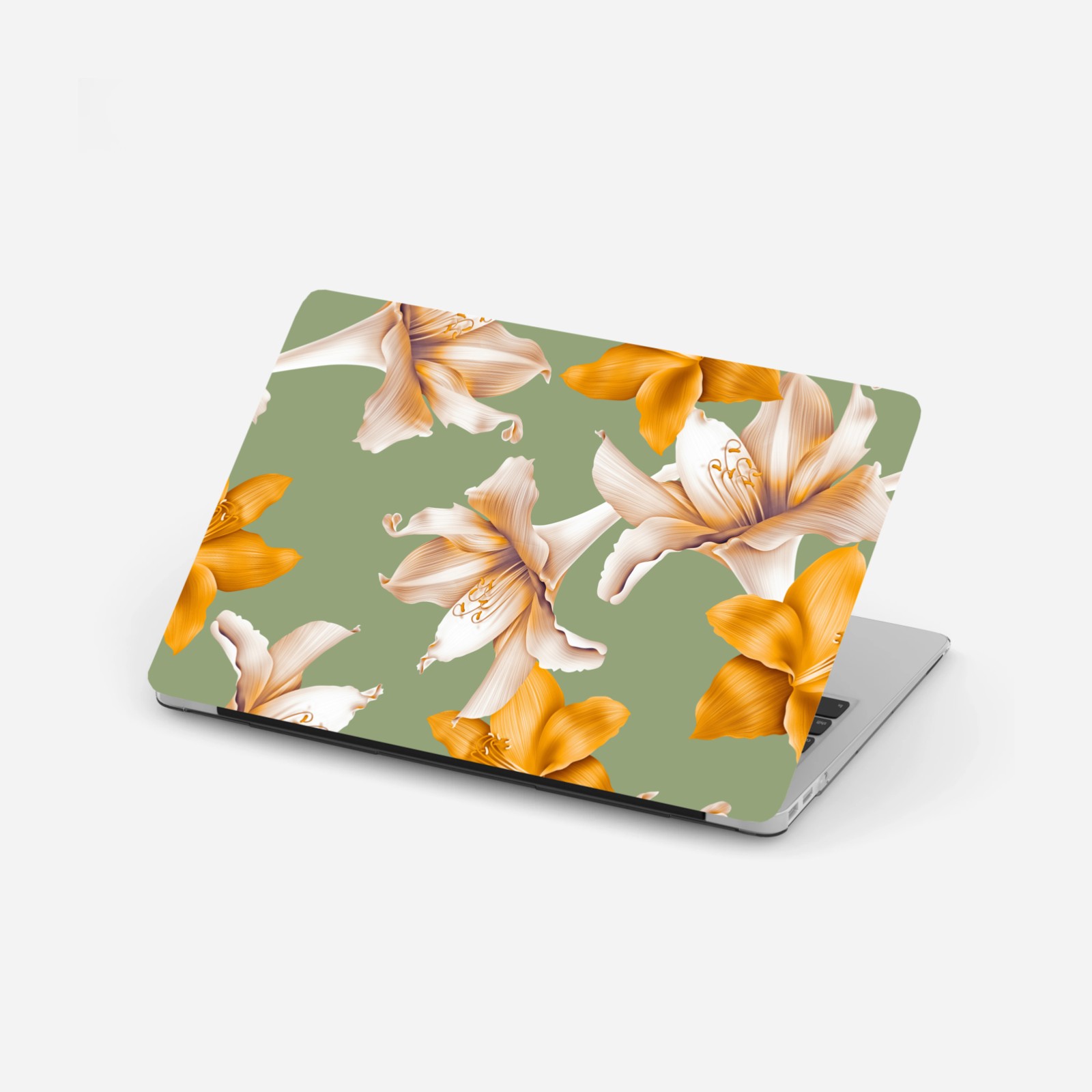 Laptop-Aufkleber Goldene lilien botanisches muster