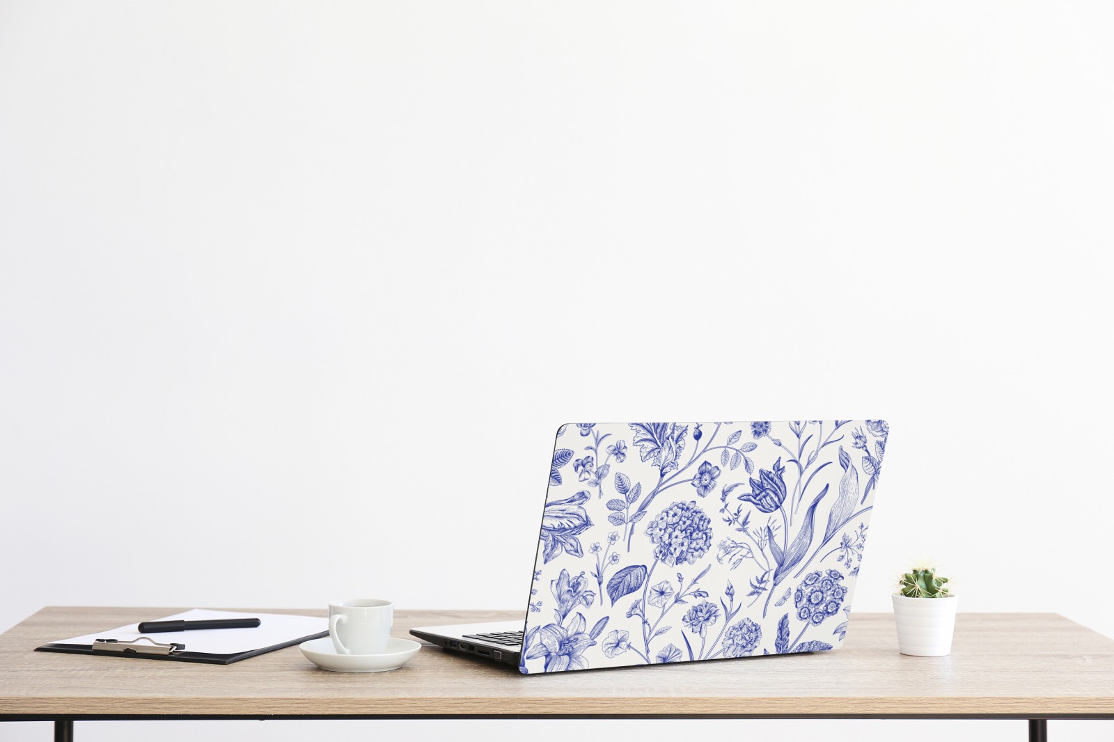Laptop-Aufkleber klassisches blaues toile blumenmuster