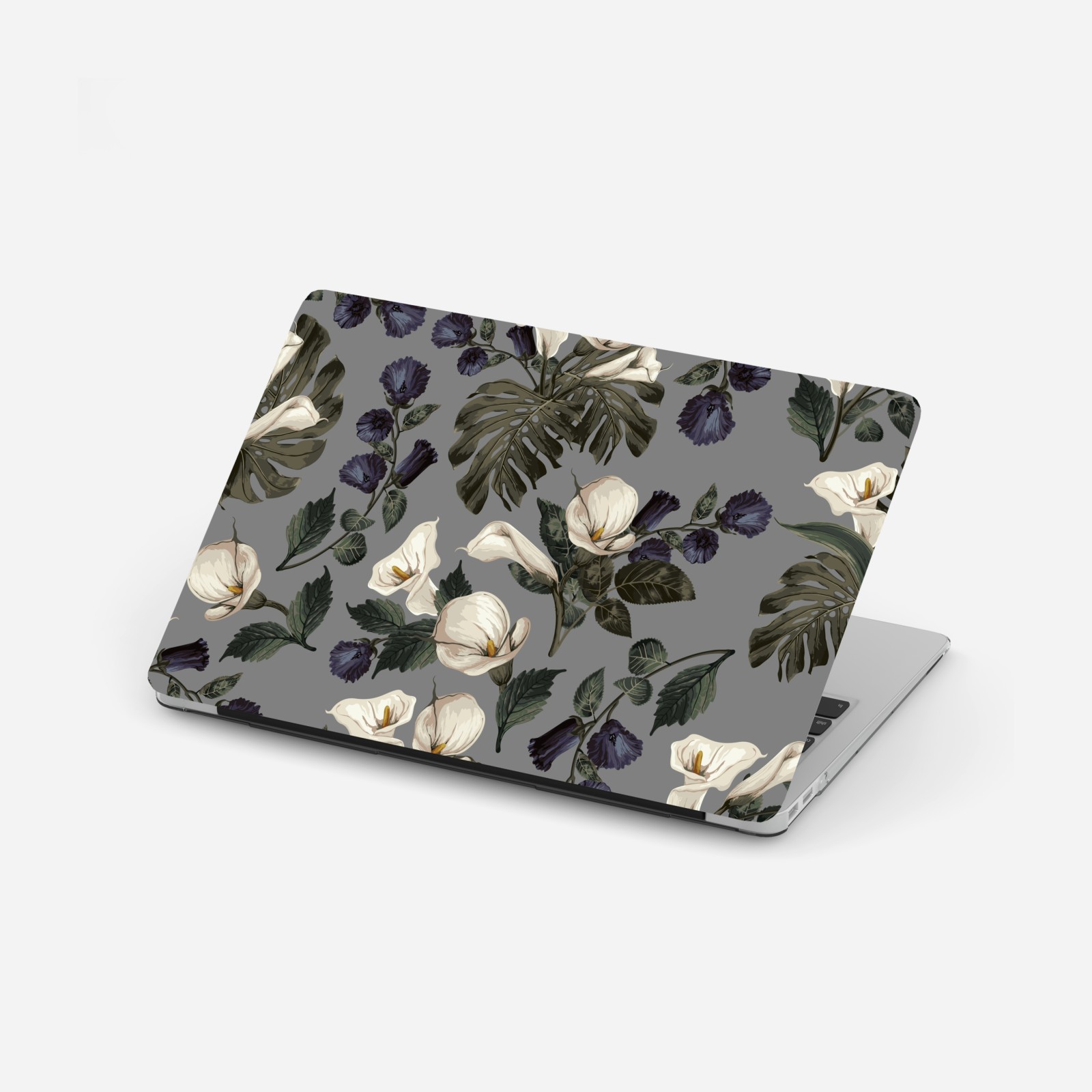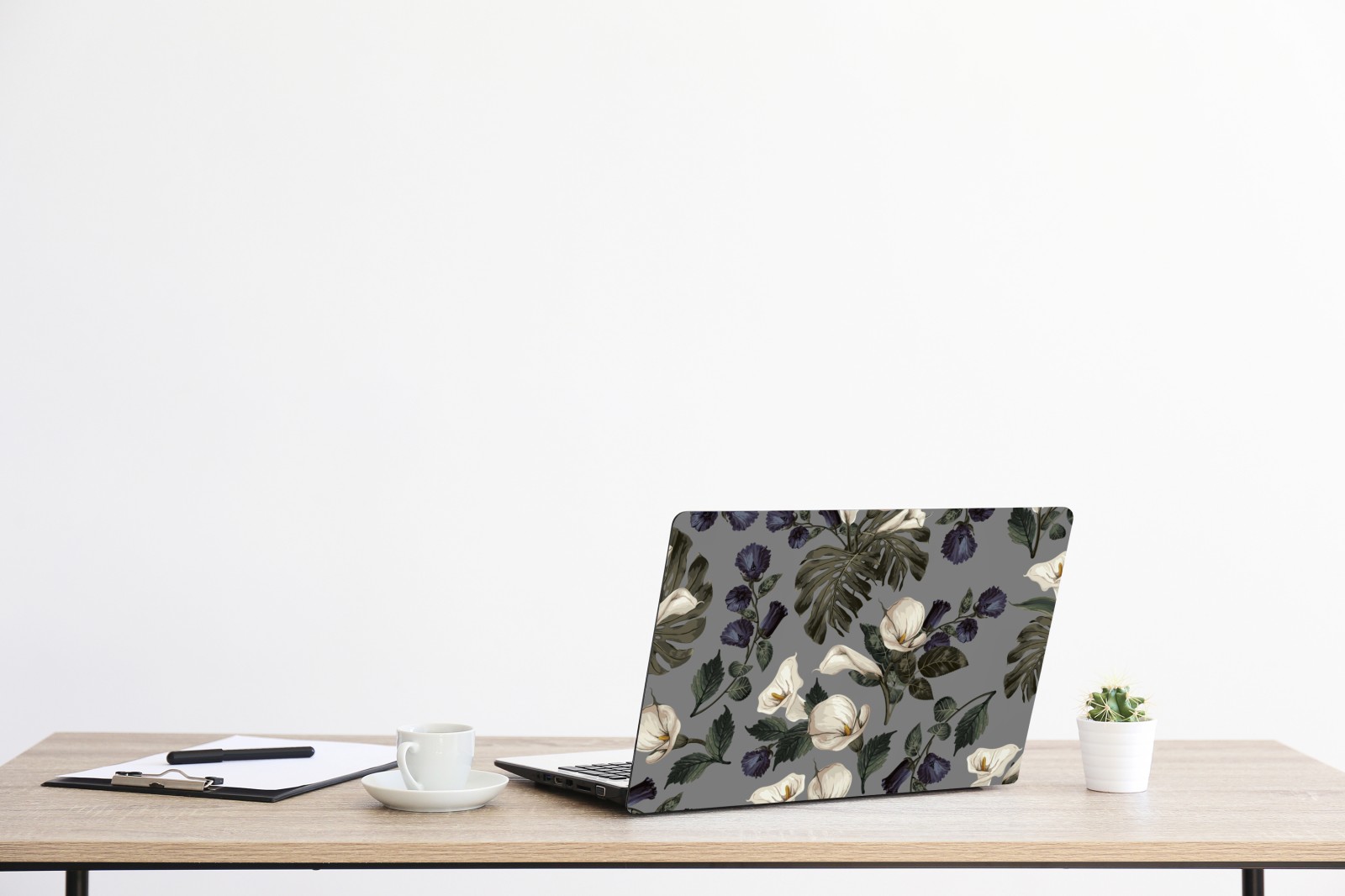 Laptop-Aufkleber vintage calla blumenmuster auf grauem hintergrund