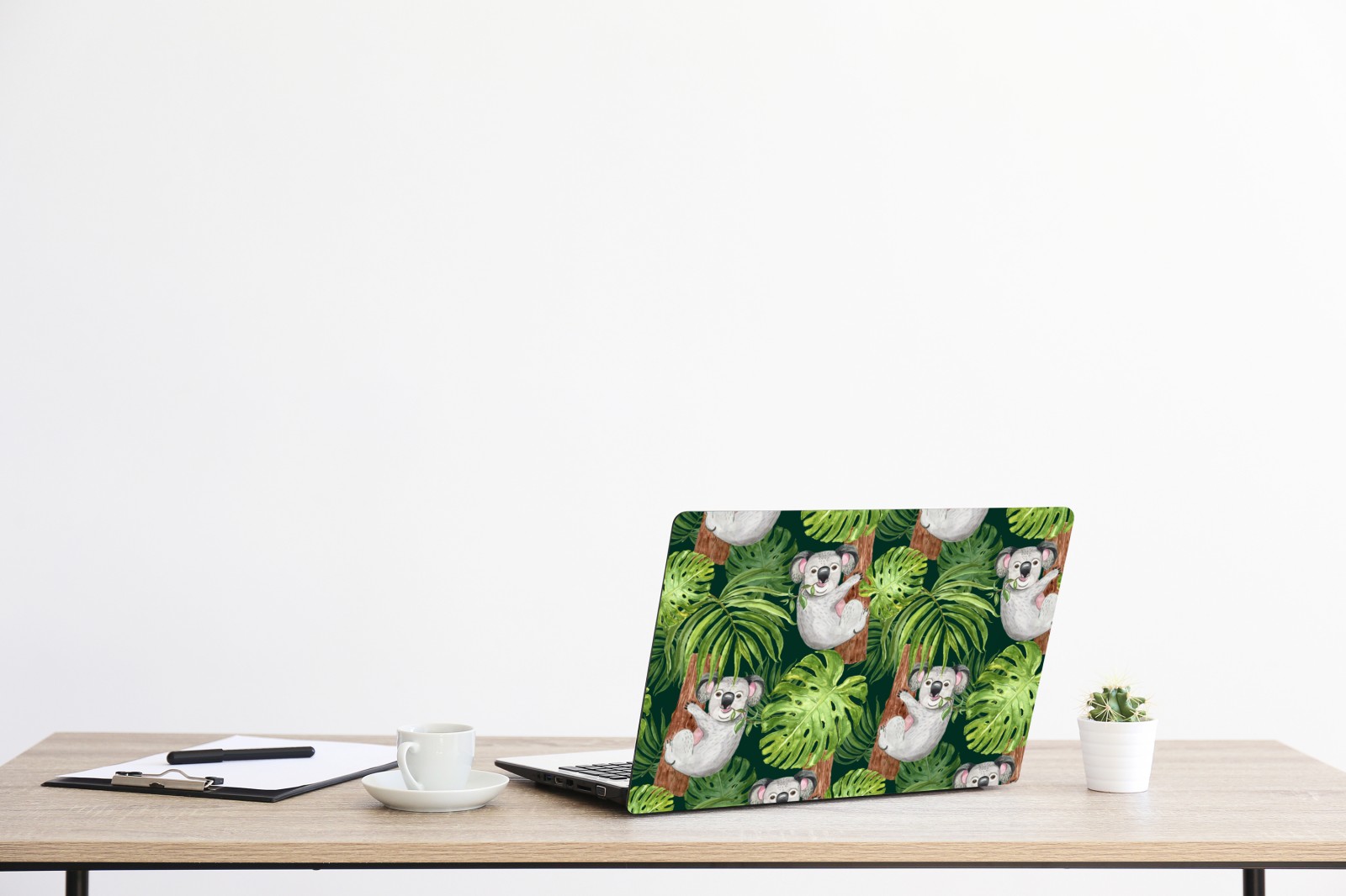 Laptop-Aufkleber niedliches aquarell-koala-muster mit tropischen blättern