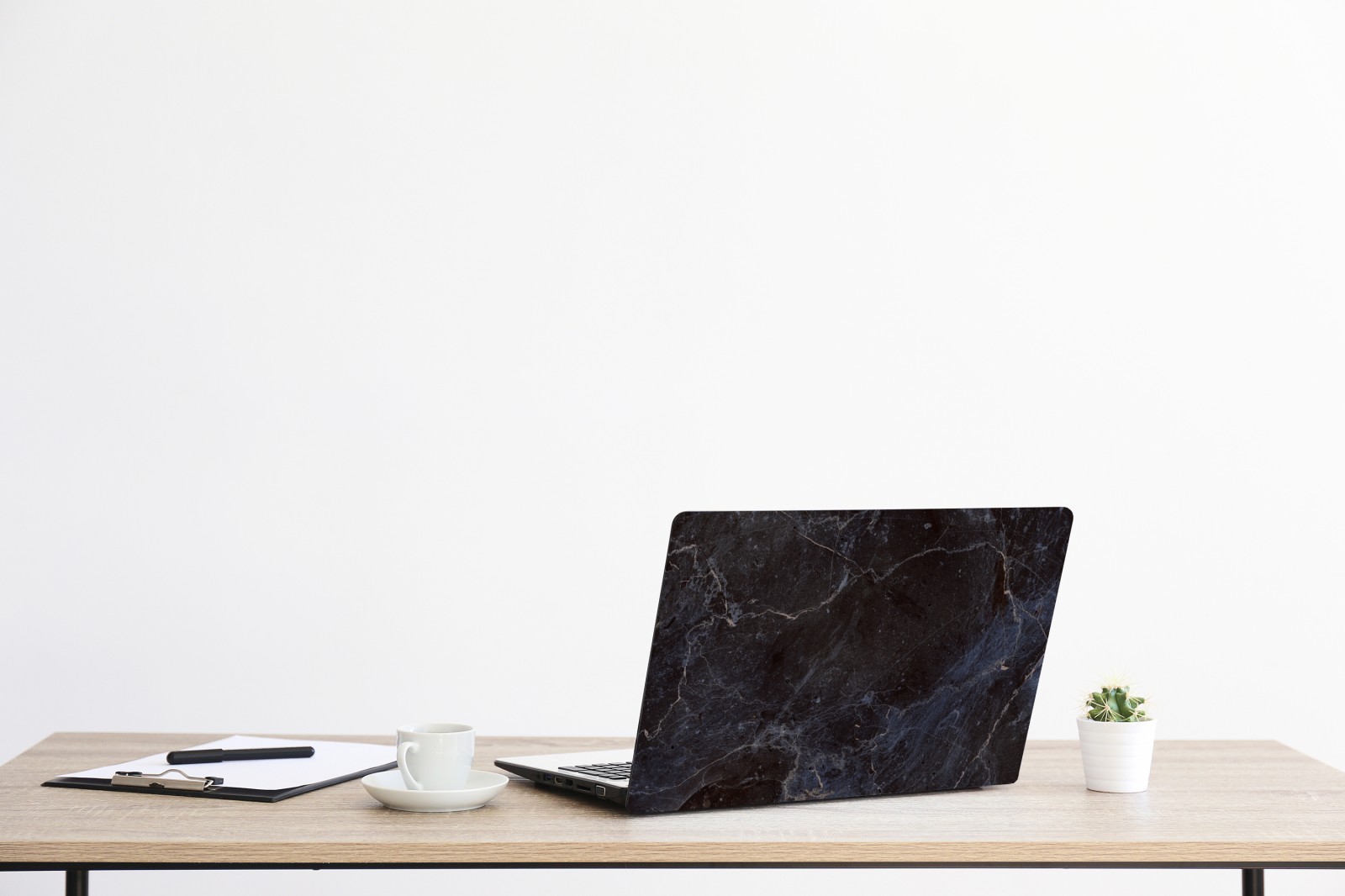 Laptop-Aufkleber dunkle marmortextur mit blauen adern