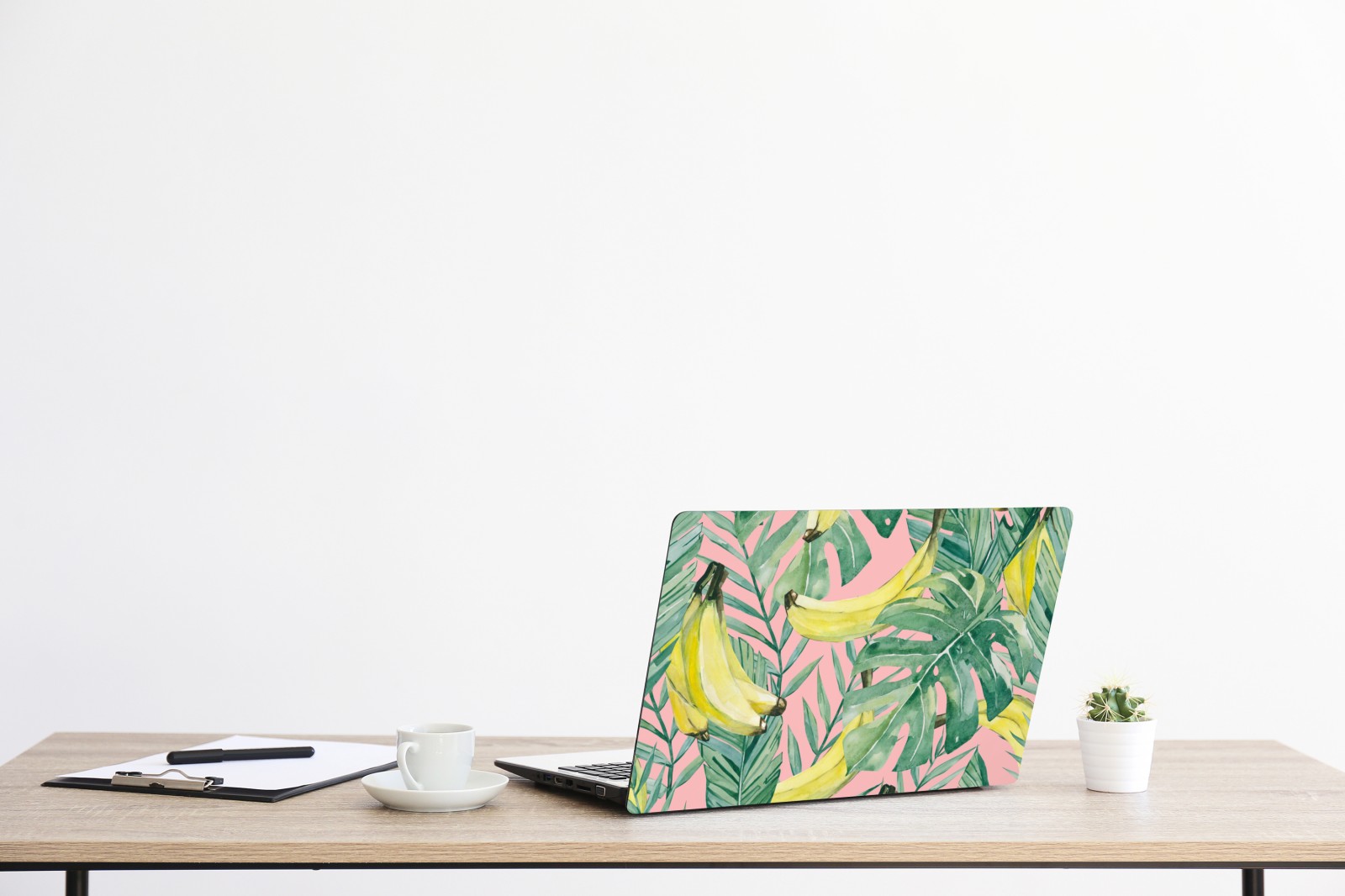 Laptop-Aufkleber aquarell-bananen und blättermuster auf rosa hintergrund