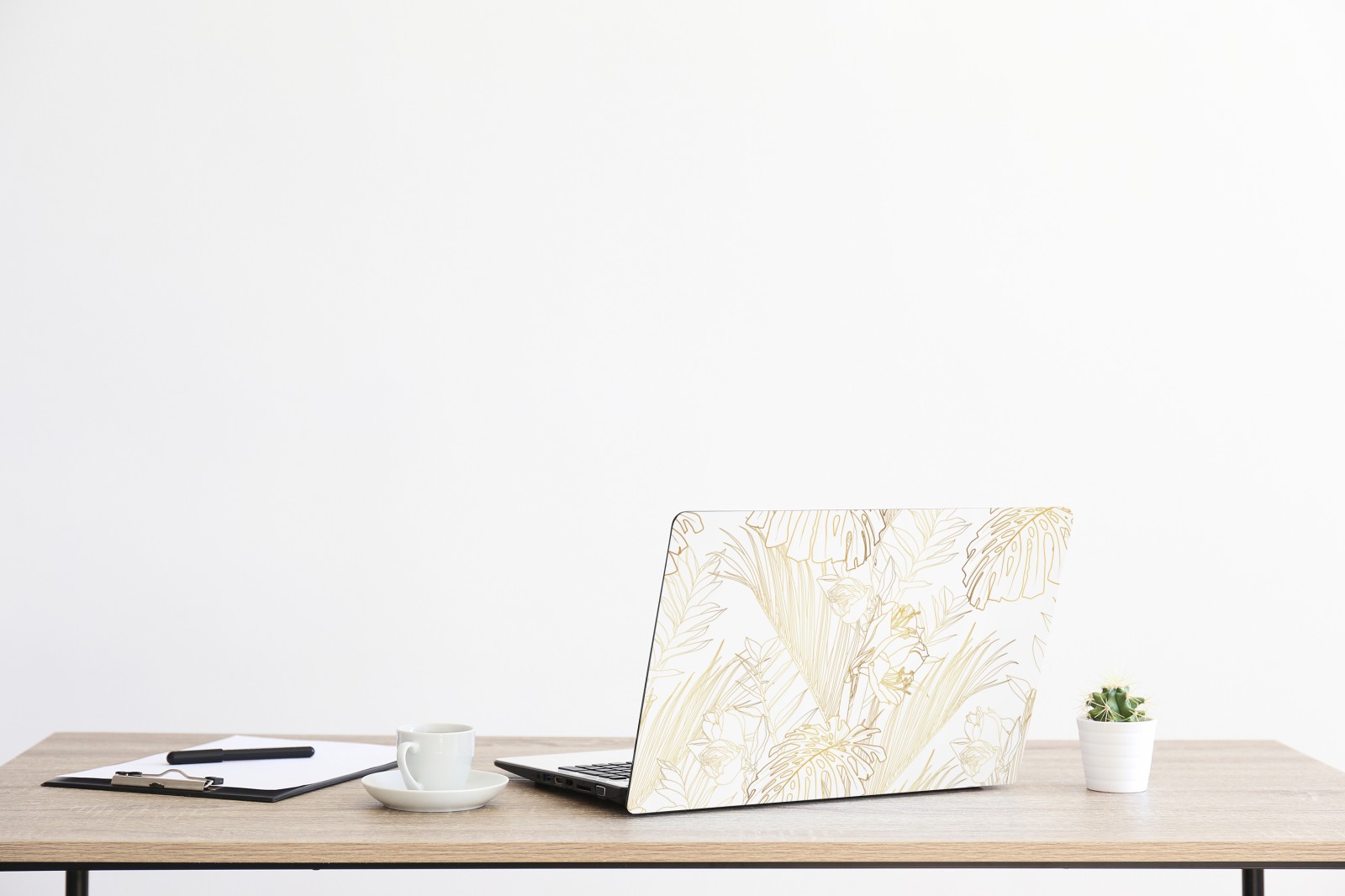 Laptop-Aufkleber goldenes tropisches blattmuster