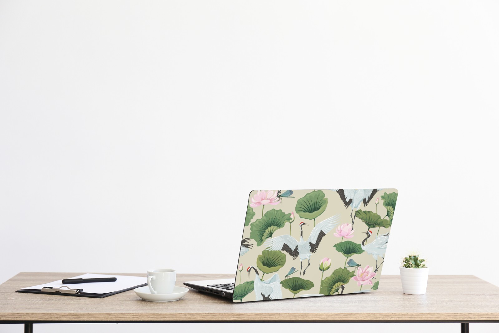 Laptop-Aufkleber elegantes muster mit kranichen und lotusblumen