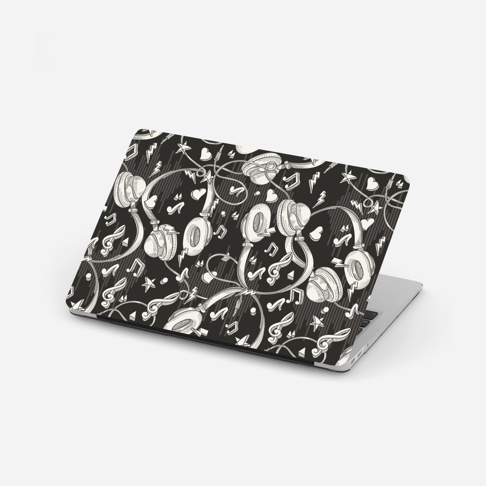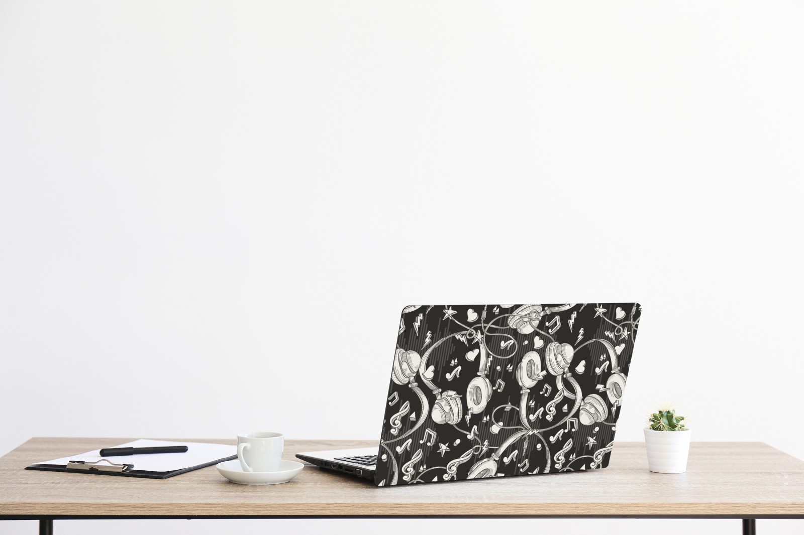 Laptop-Aufkleber monochromatisches muster mit kopfhörern und noten