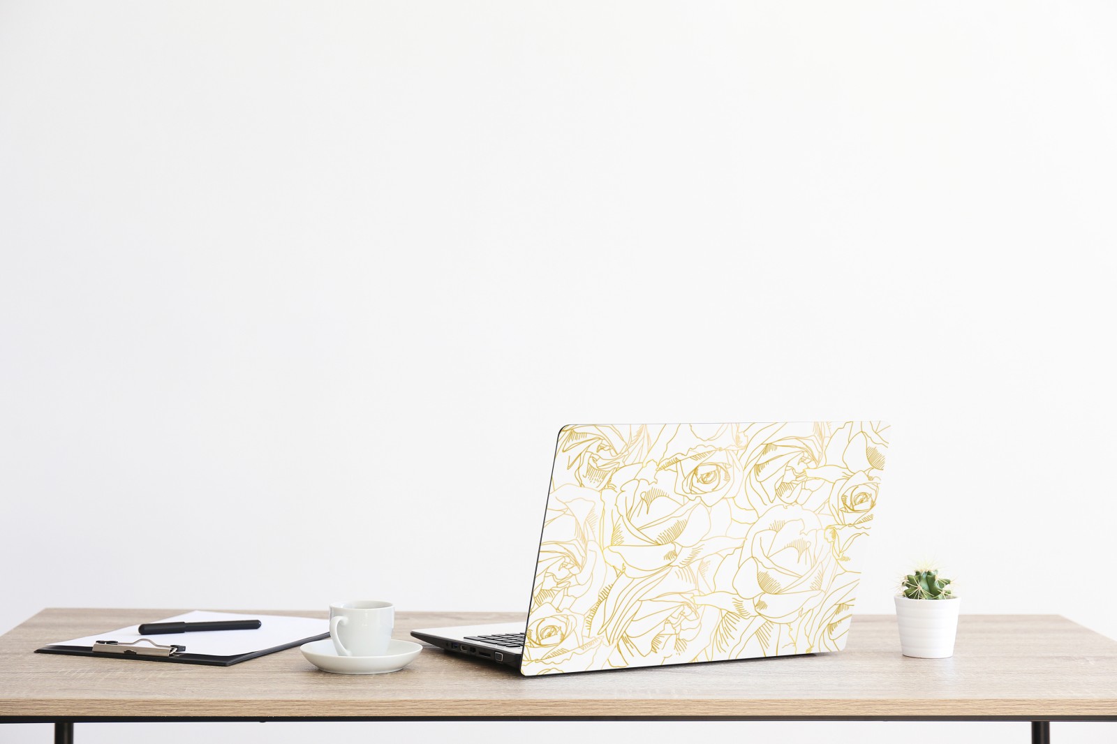 Laptop-Aufkleber goldene rosen linienzeichnung