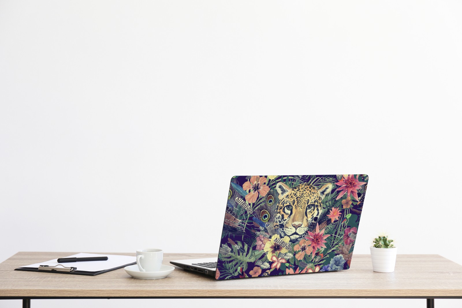 Laptop-Aufkleber vintage aquarell leopard im tropischen dschungel