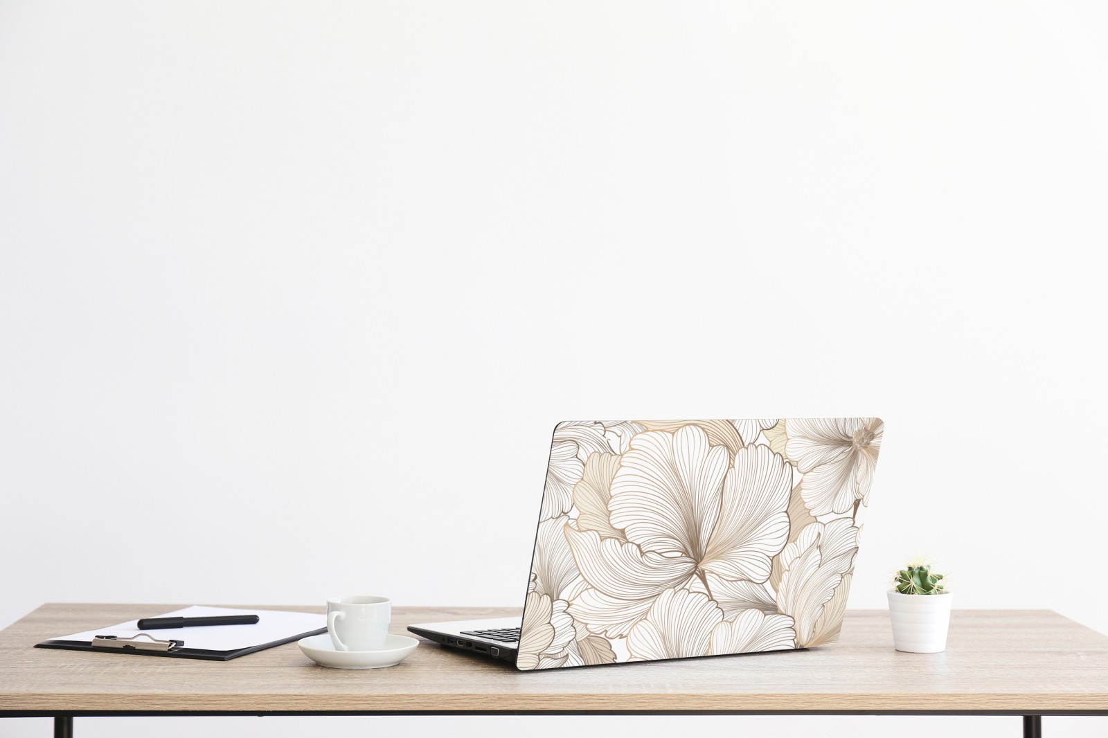 Elegante handgezeichnete beige Blumen schaffen ein ruhiges, modernes Muster, ideal für Schlafzimmer und Wohnzimmer.
