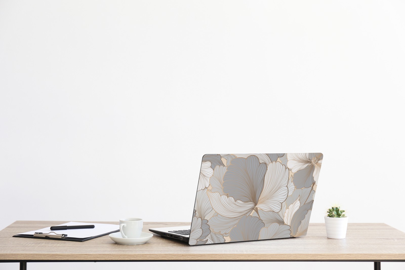 Sanfte Pastellblumen in neutralen Beige- und Grautönen mit feinen goldenen Linien verleihen jedem Raum elegante Ruhe.