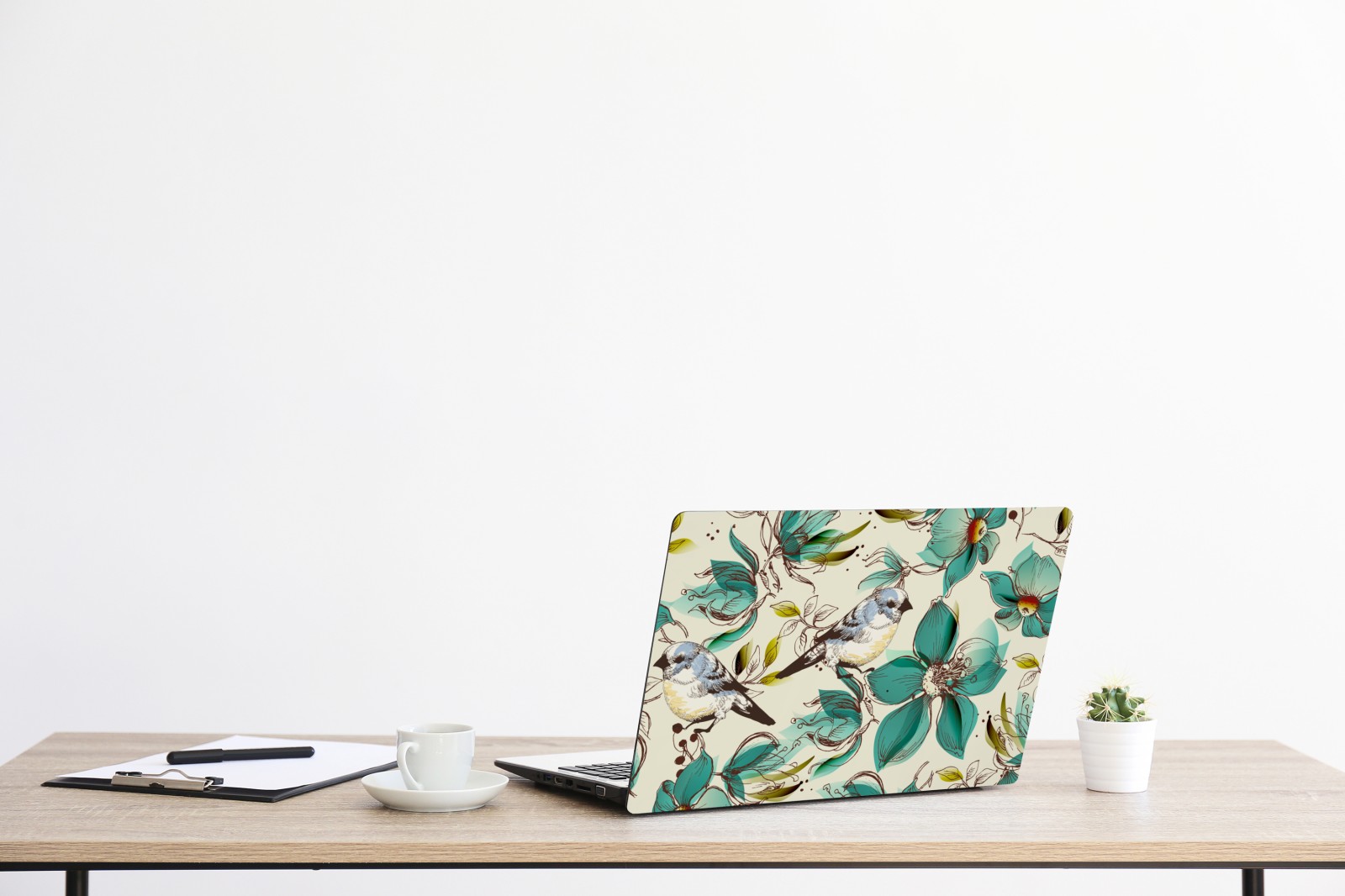 Laptop-Aufkleber retro türkis blumen- und vogelmuster