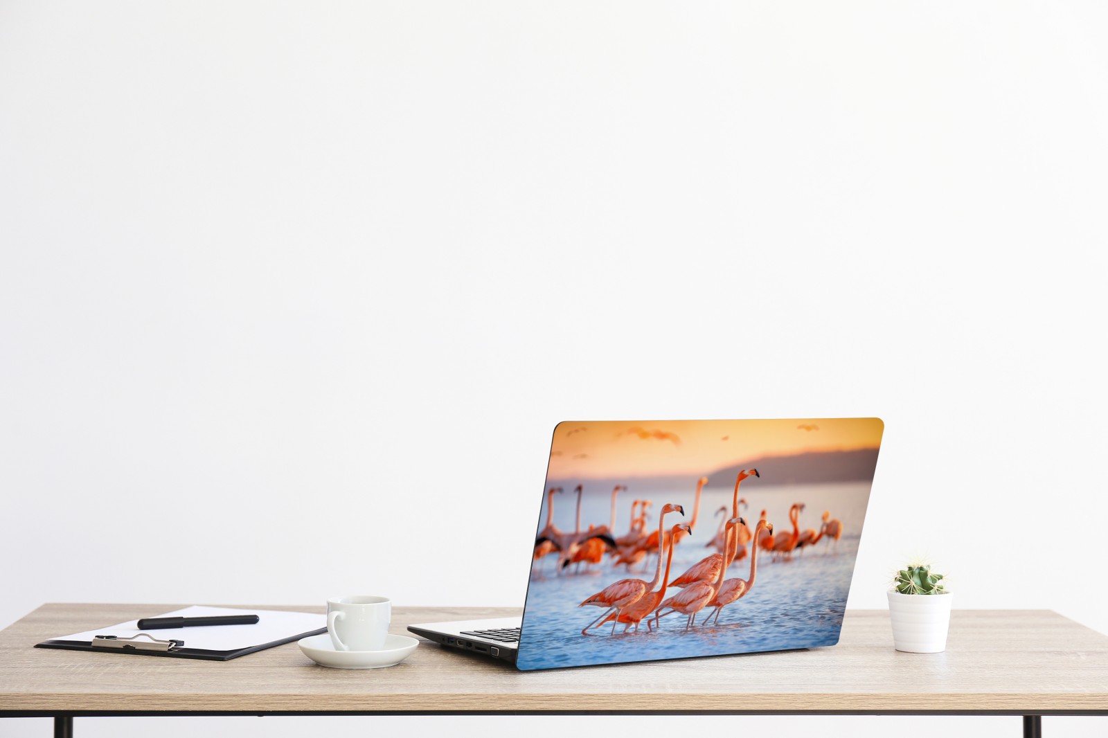 Laptop-Aufkleber rosa flamingos bei sonnenuntergang