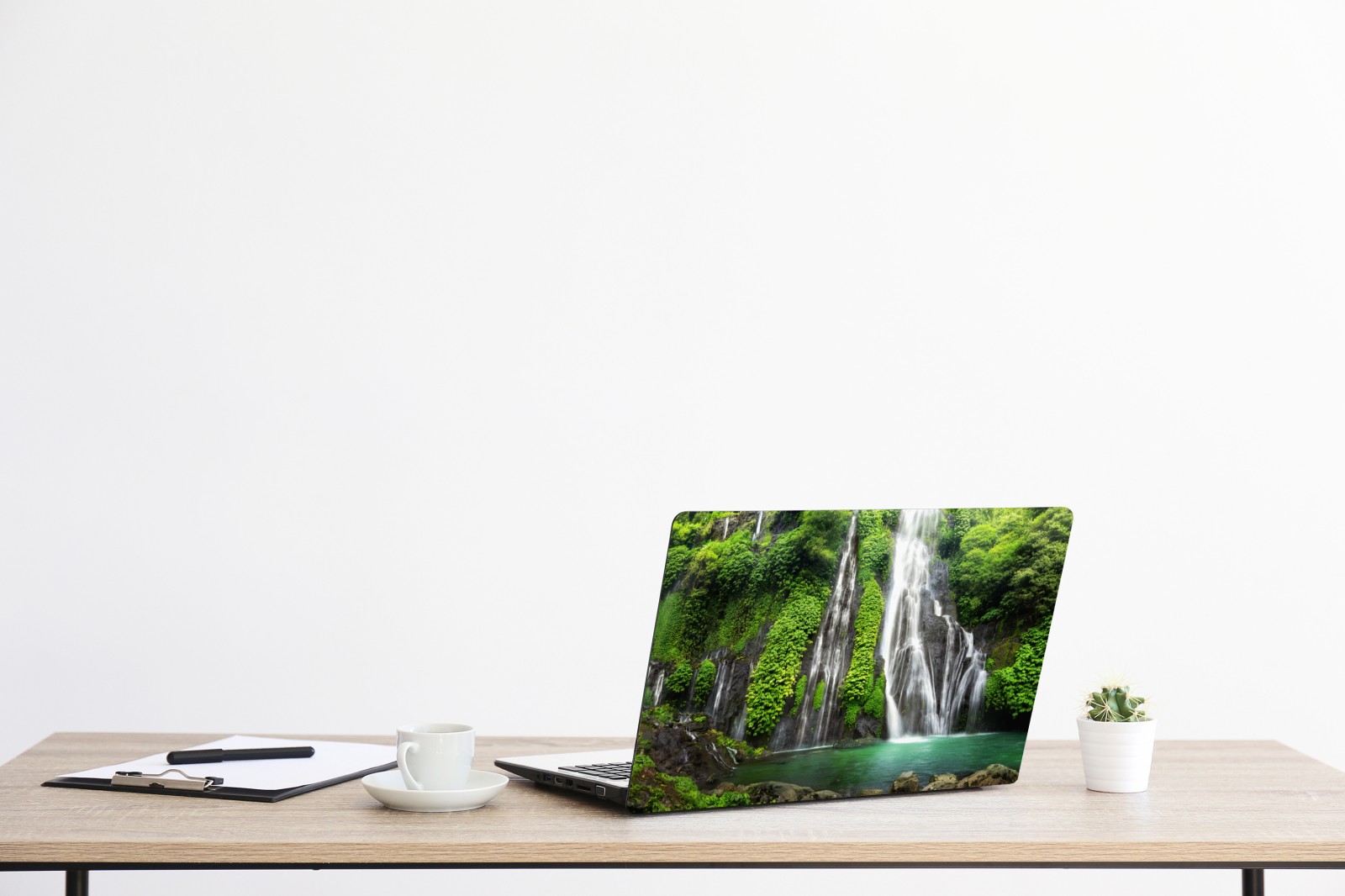 Laptop-Aufkleber ruhiger wasserfall im smaragdgrünen wald