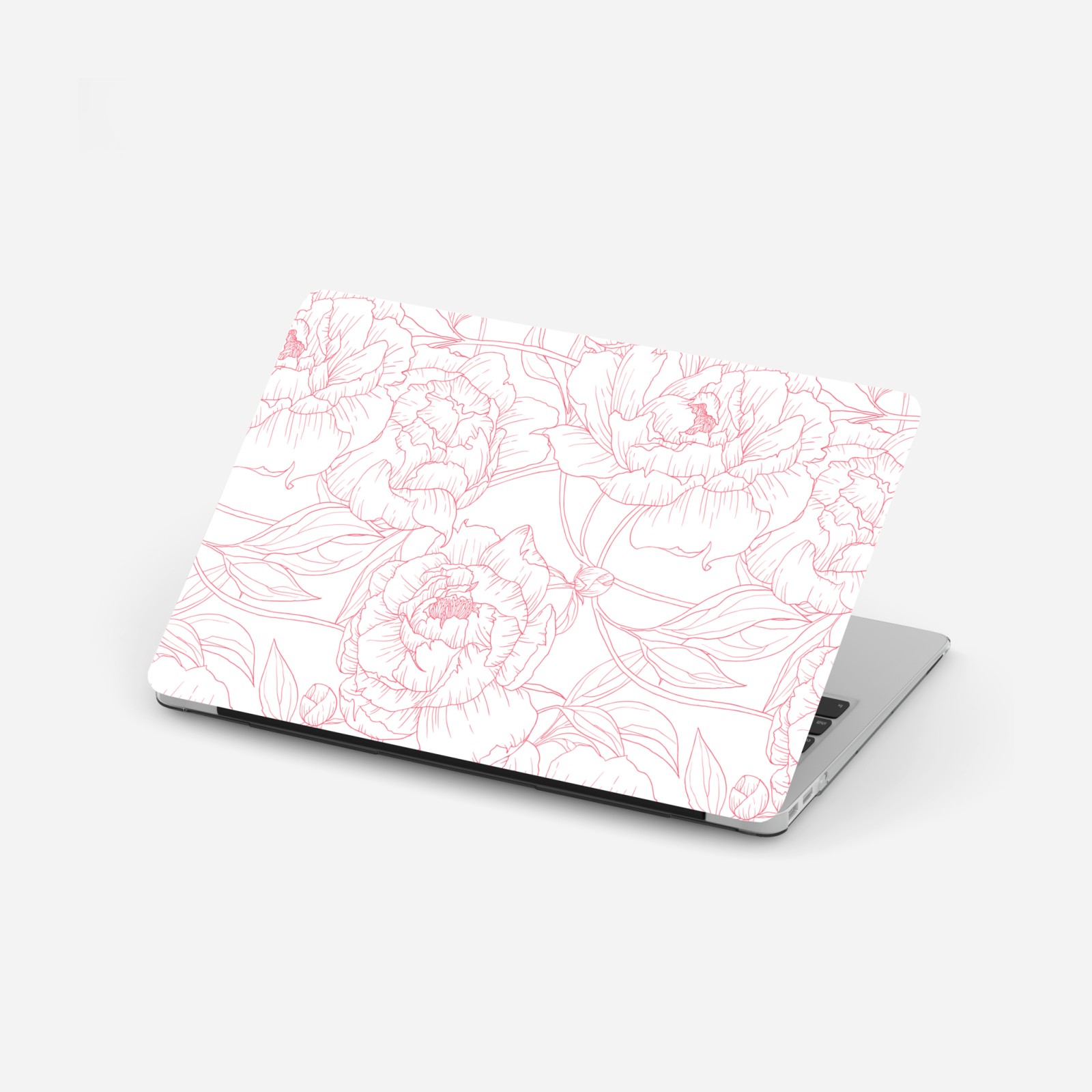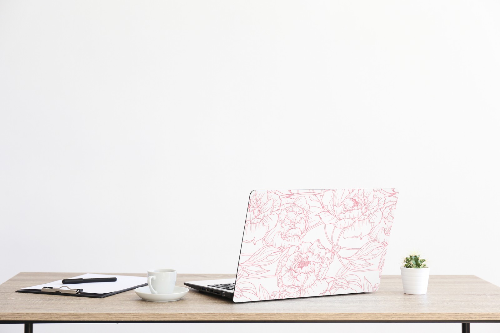 Laptop-Aufkleber zartes rosa paeonien-line-art-muster