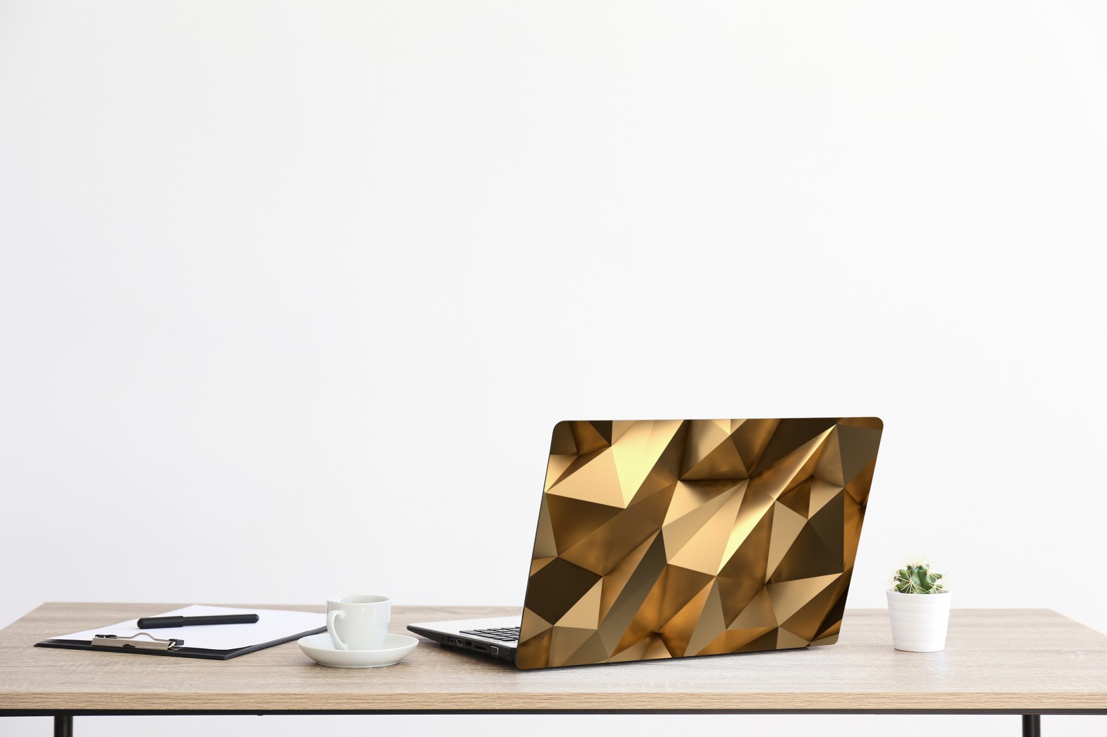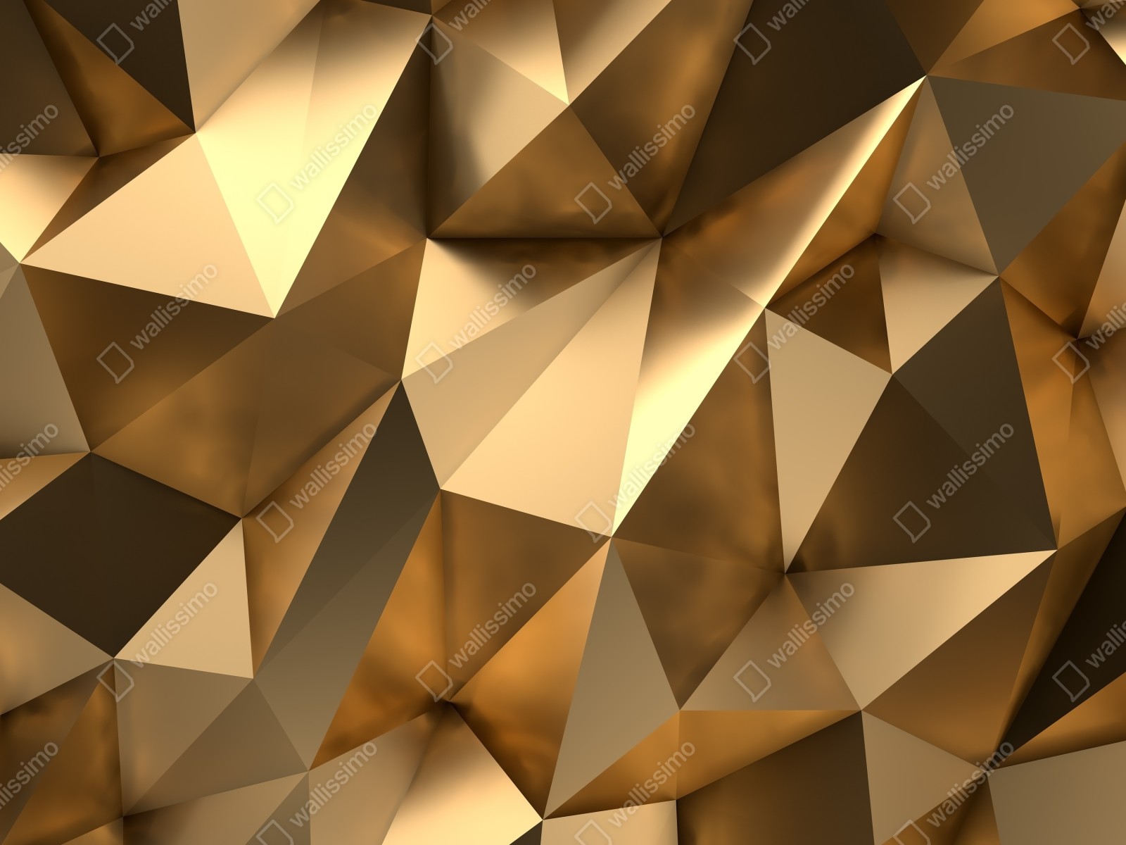 Luxuriöse goldene geometrische Komposition mit facettenförmigen 3D-Elementen verleiht jedem Interieur moderne Eleganz und Tiefe.