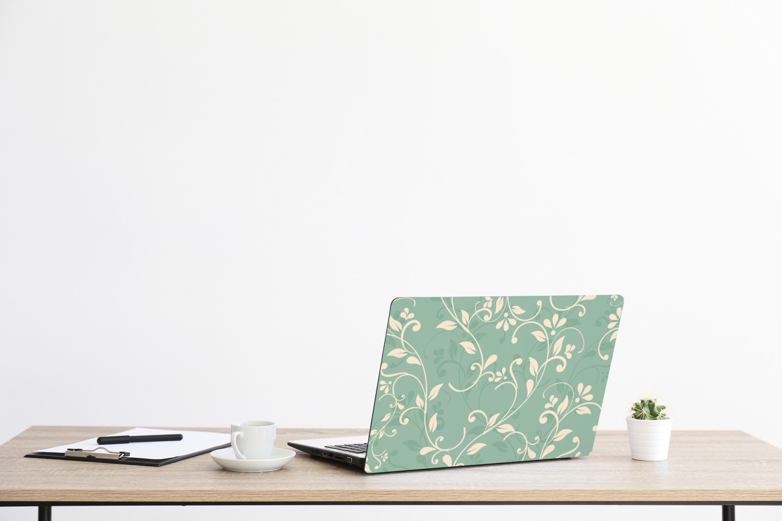 Laptop-Aufkleber minzfarbiges blumenmuster im vintage-stil