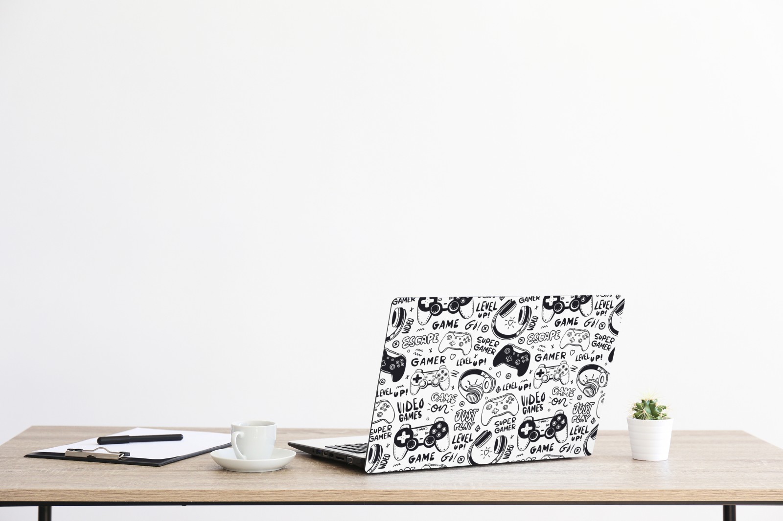 Laptop-Aufkleber doodle-muster mit videospiel-controllern