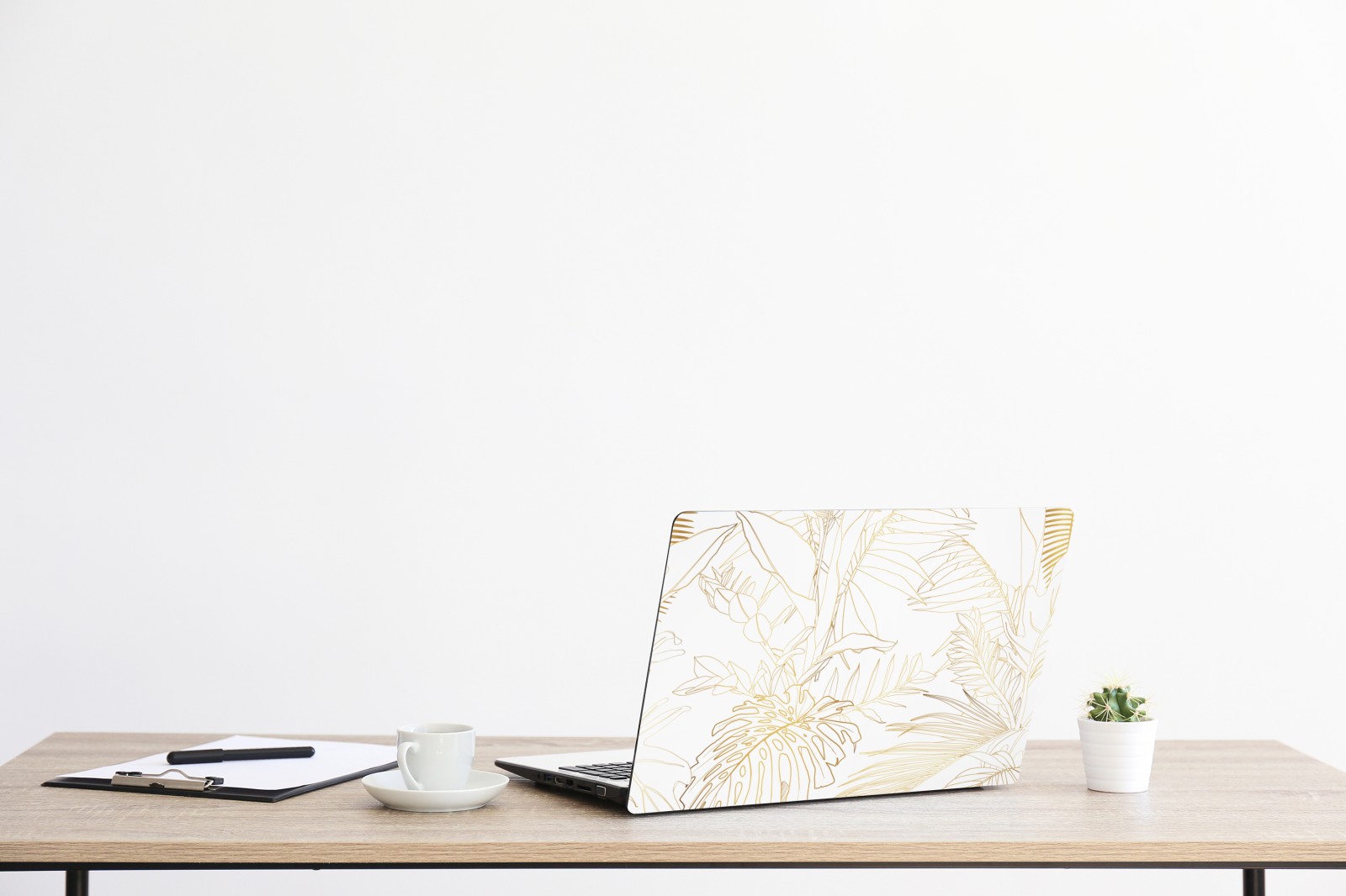 Elegante goldene Blattlinien auf weißem Hintergrund verleihen jedem Raum eine moderne, minimalistische Note.