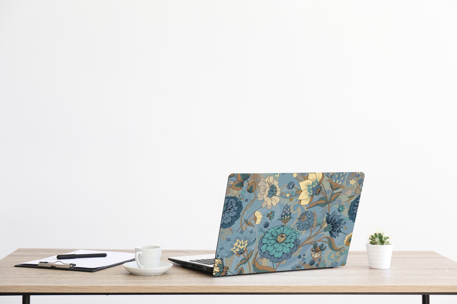 Laptop-Aufkleber vintage-blumenmuster in gedämpften blau- und beigetönen