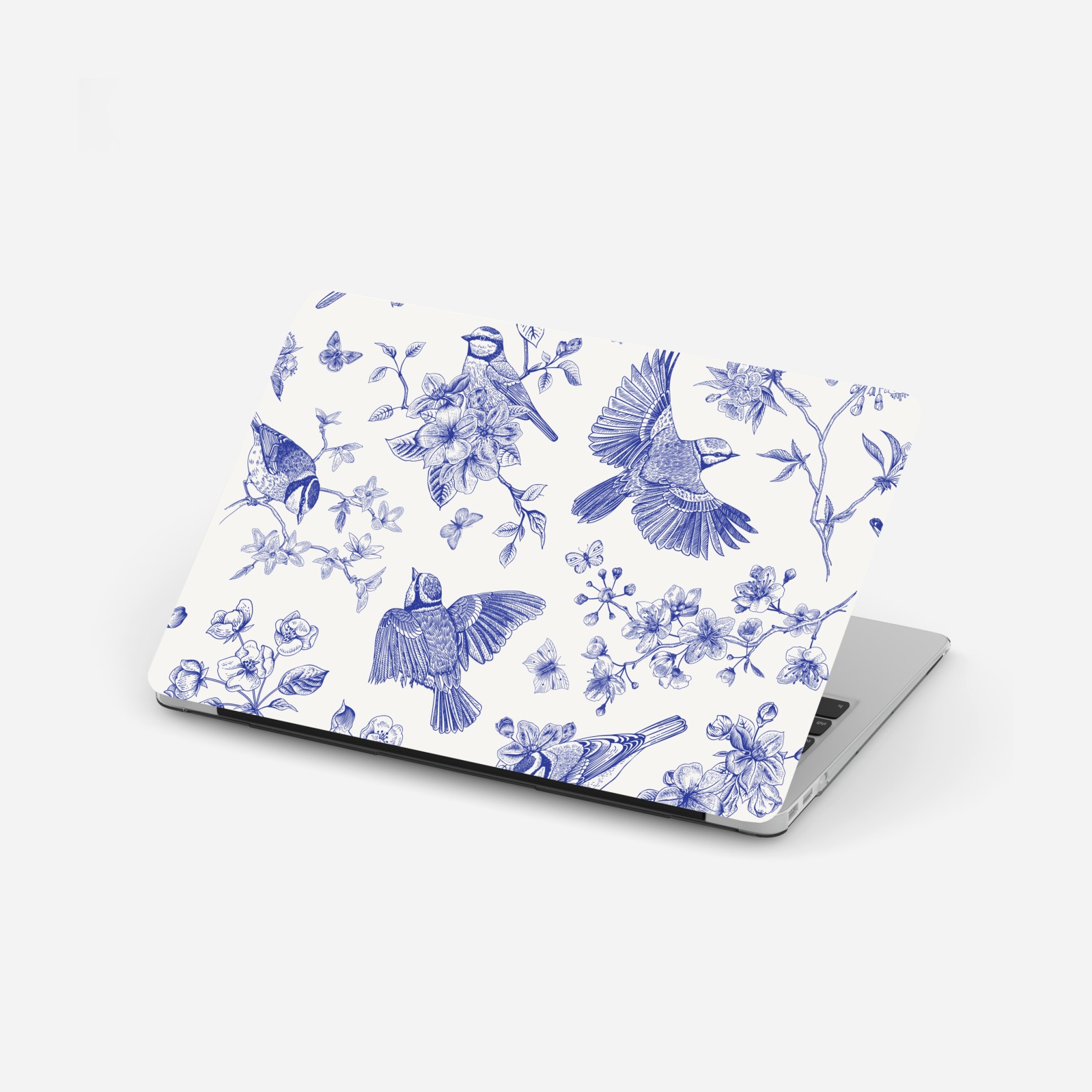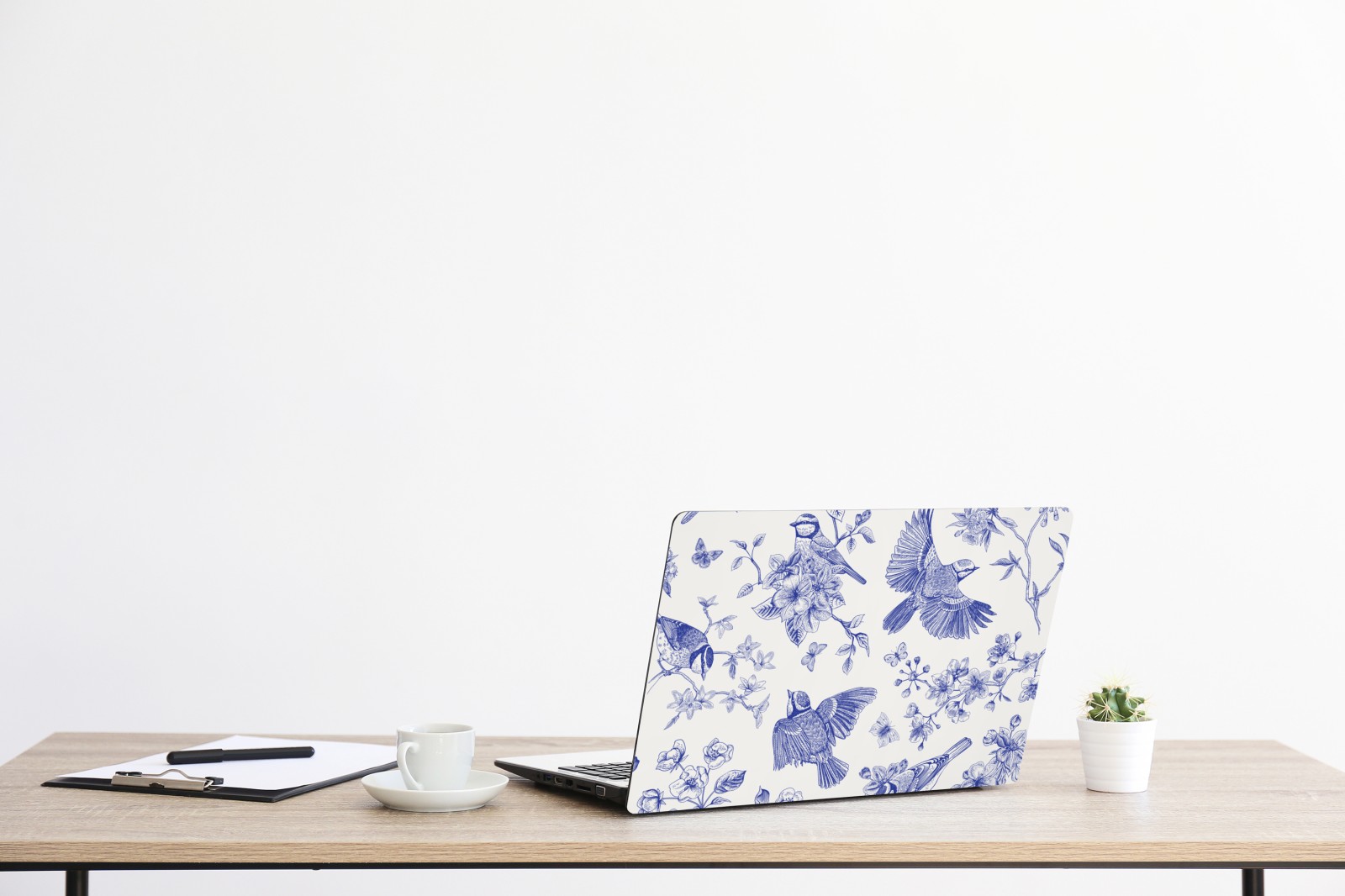 Laptop-Aufkleber blaues muster mit vögeln und blüten im vintage-stil