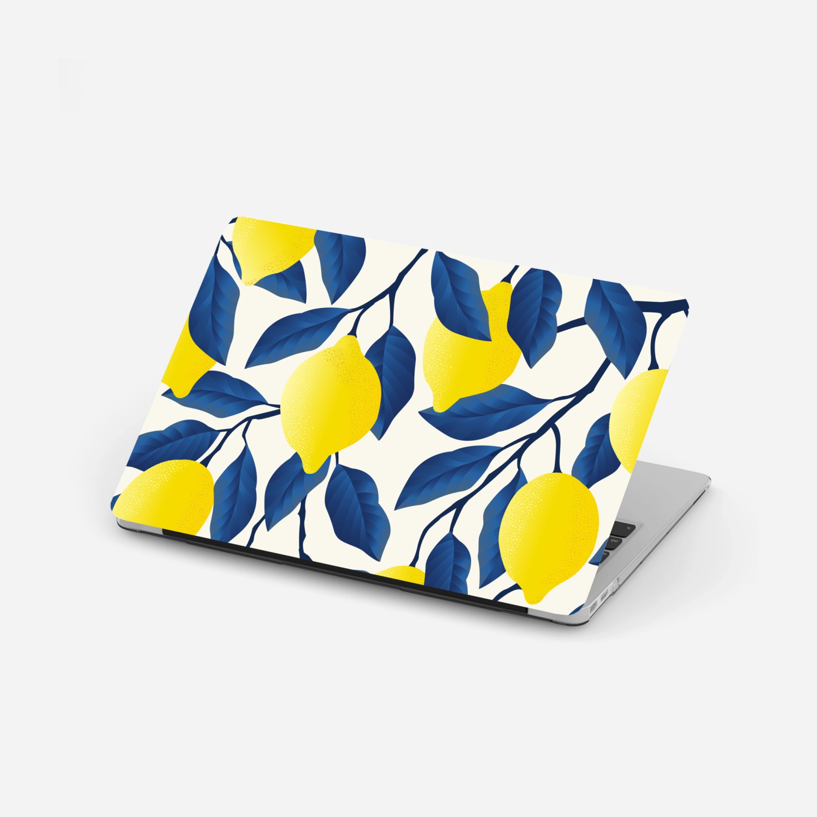 Laptop-Aufkleber Lebhaftes zitronenmuster mit blauen blättern