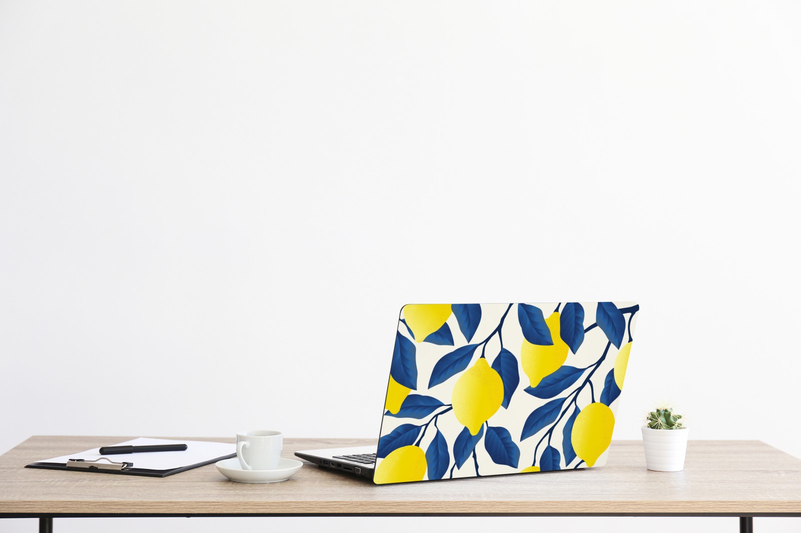 Laptop-Aufkleber lebhaftes zitronenmuster mit blauen blättern